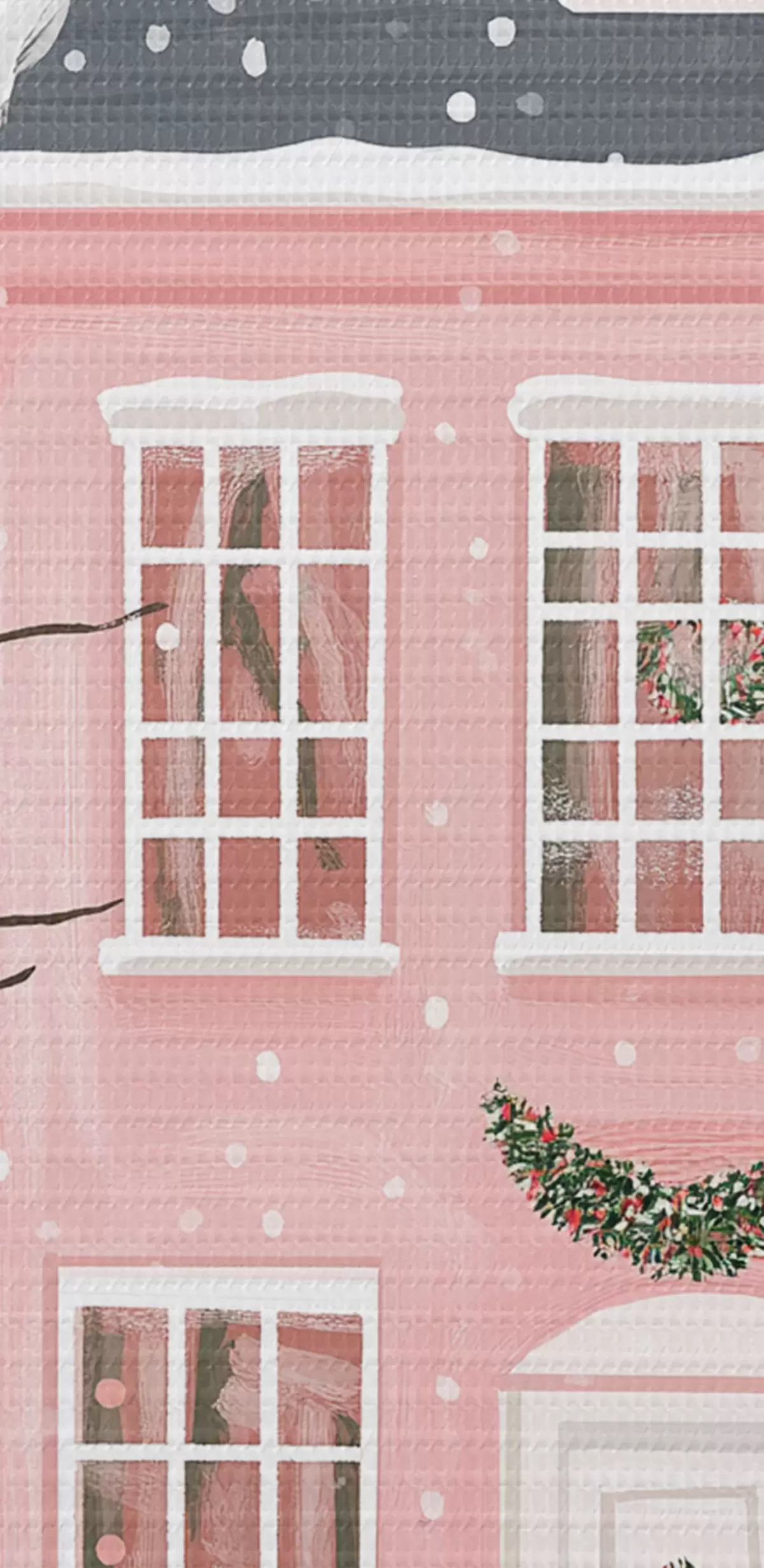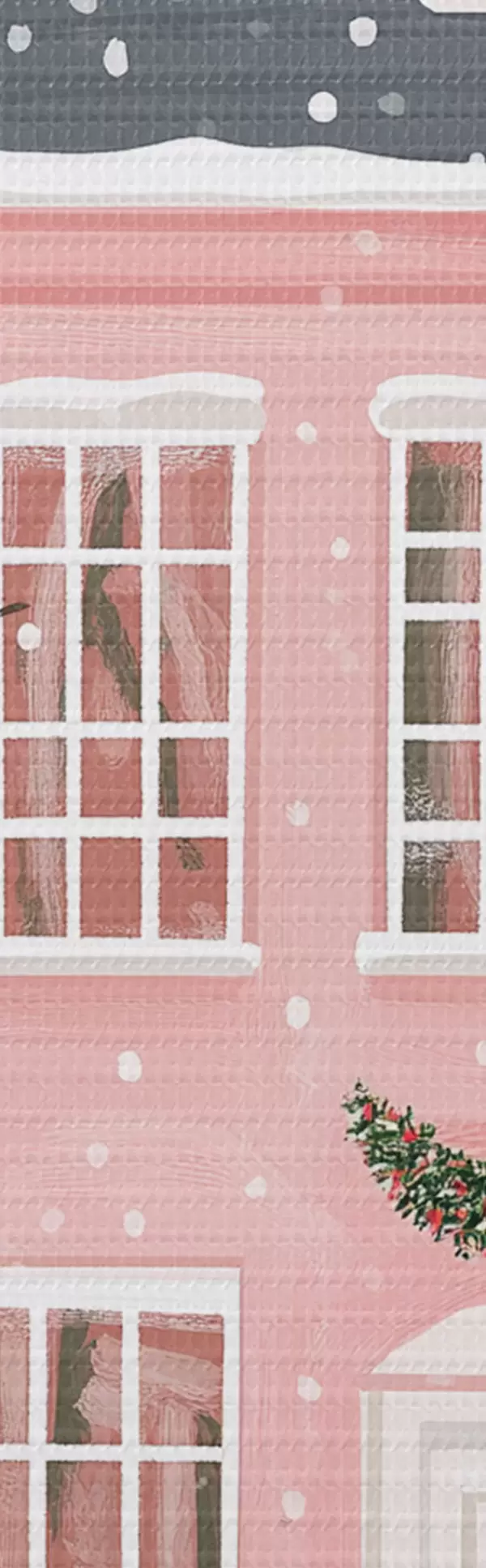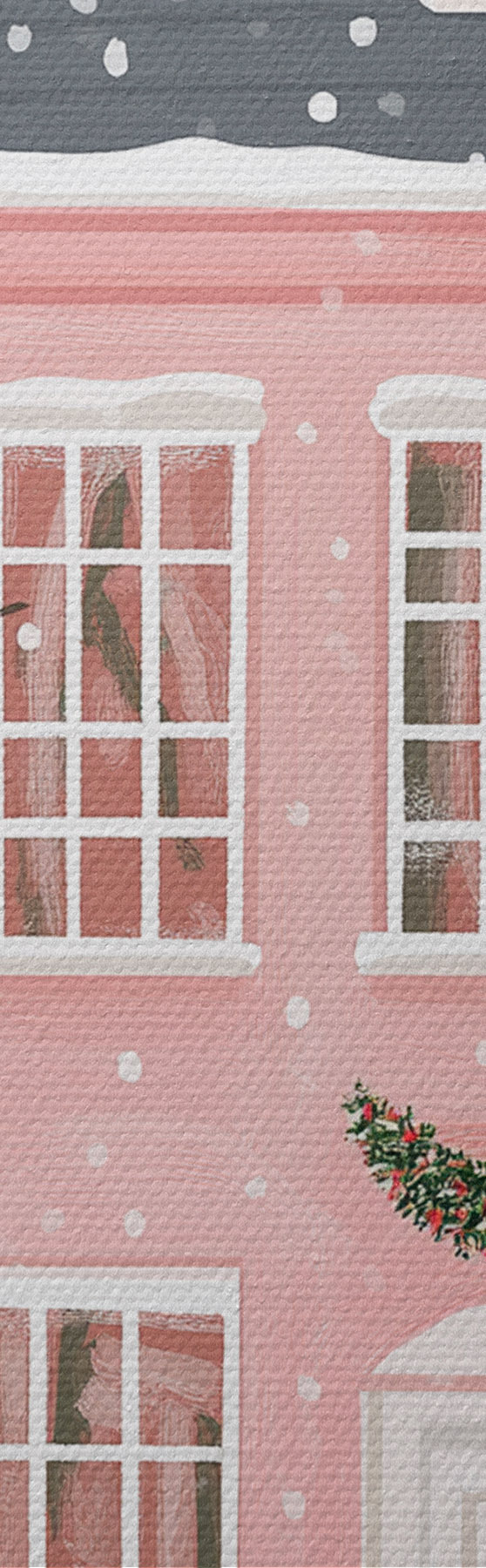 Schilderijen Schattige roze huisjes, dennenbomen, winterlandschappen  s42791