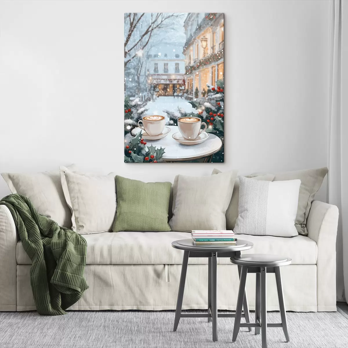 Schilderij Kopjes koffie in het gezellige café, winterse esthetiek, boho-stijl Art. s42797