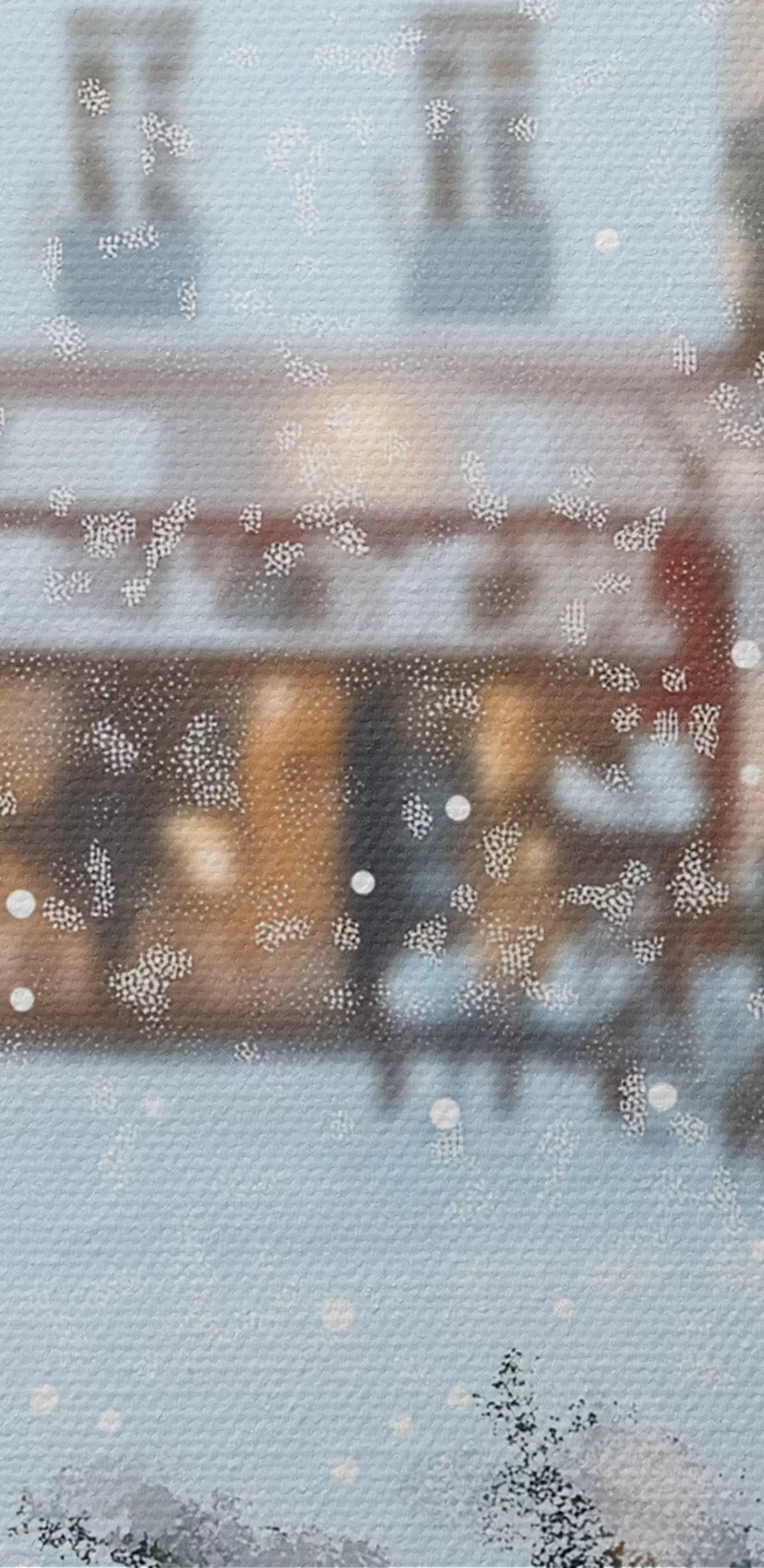 Het schilderij kan direct na ontvangst worden opgehangen. Het schilderij wordt opgespannen op een 2 cm breed houten spieraam.