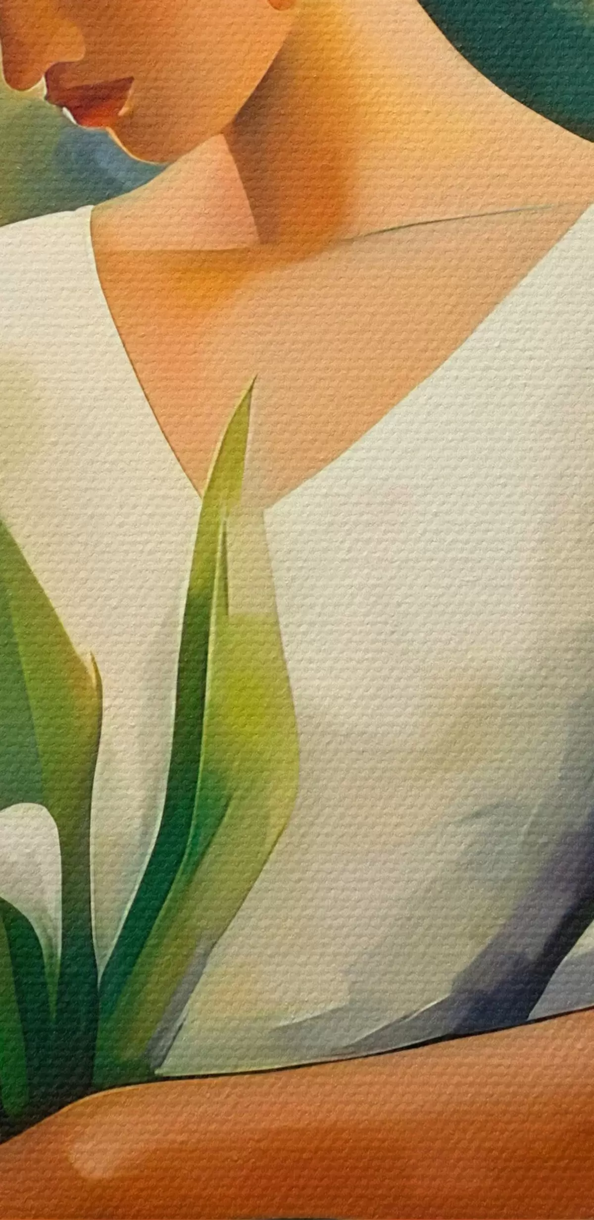 Schilderij Vrouw met een boeket aronskelken Art. s42818