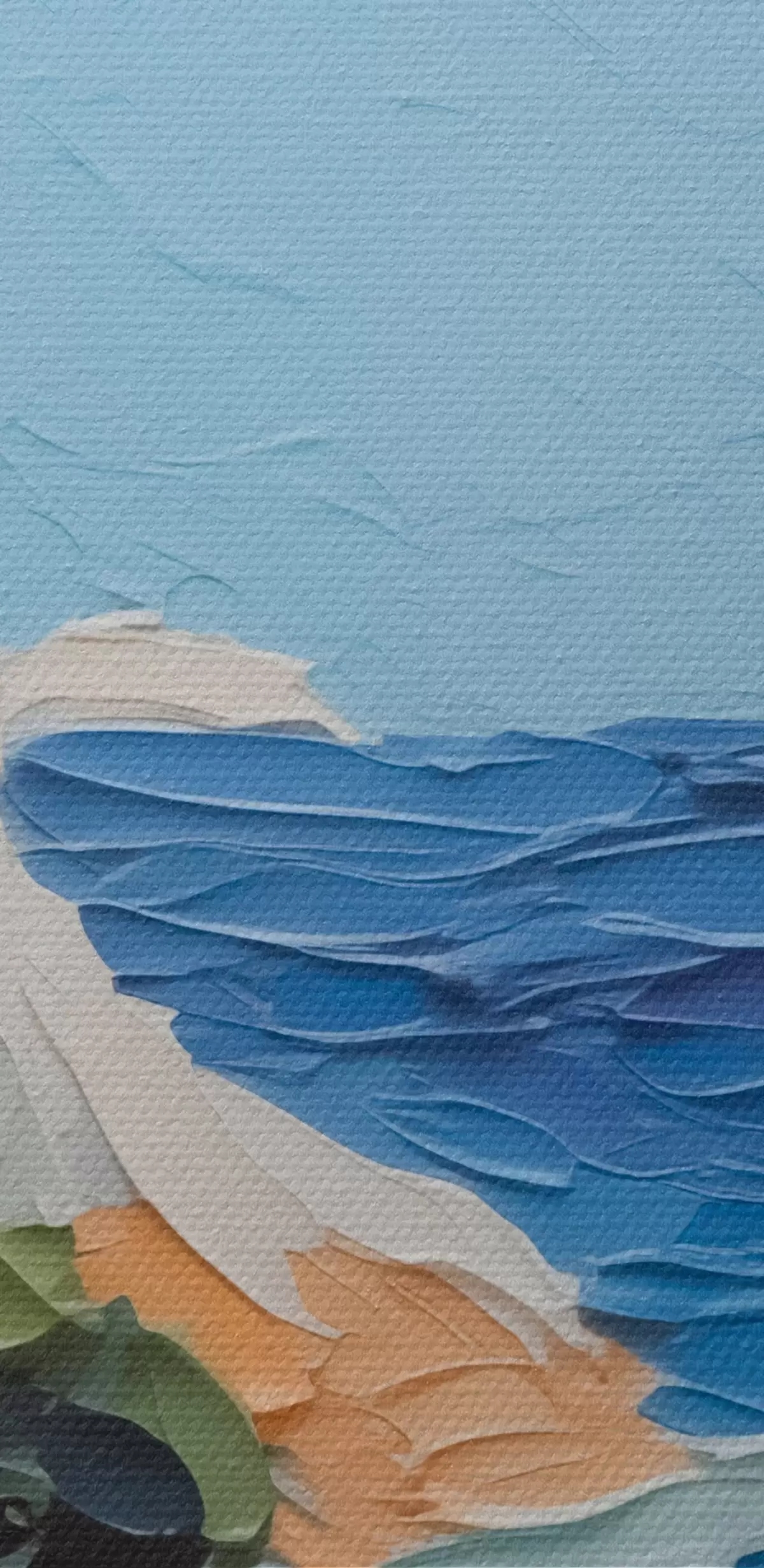Het schilderij kan direct na ontvangst worden opgehangen. Het schilderij wordt opgespannen op een 2 cm breed houten spieraam.