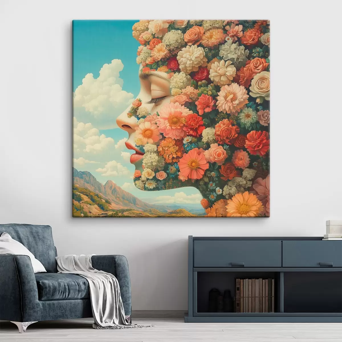 Schilderijen Gezicht in profiel in bloemen s42861