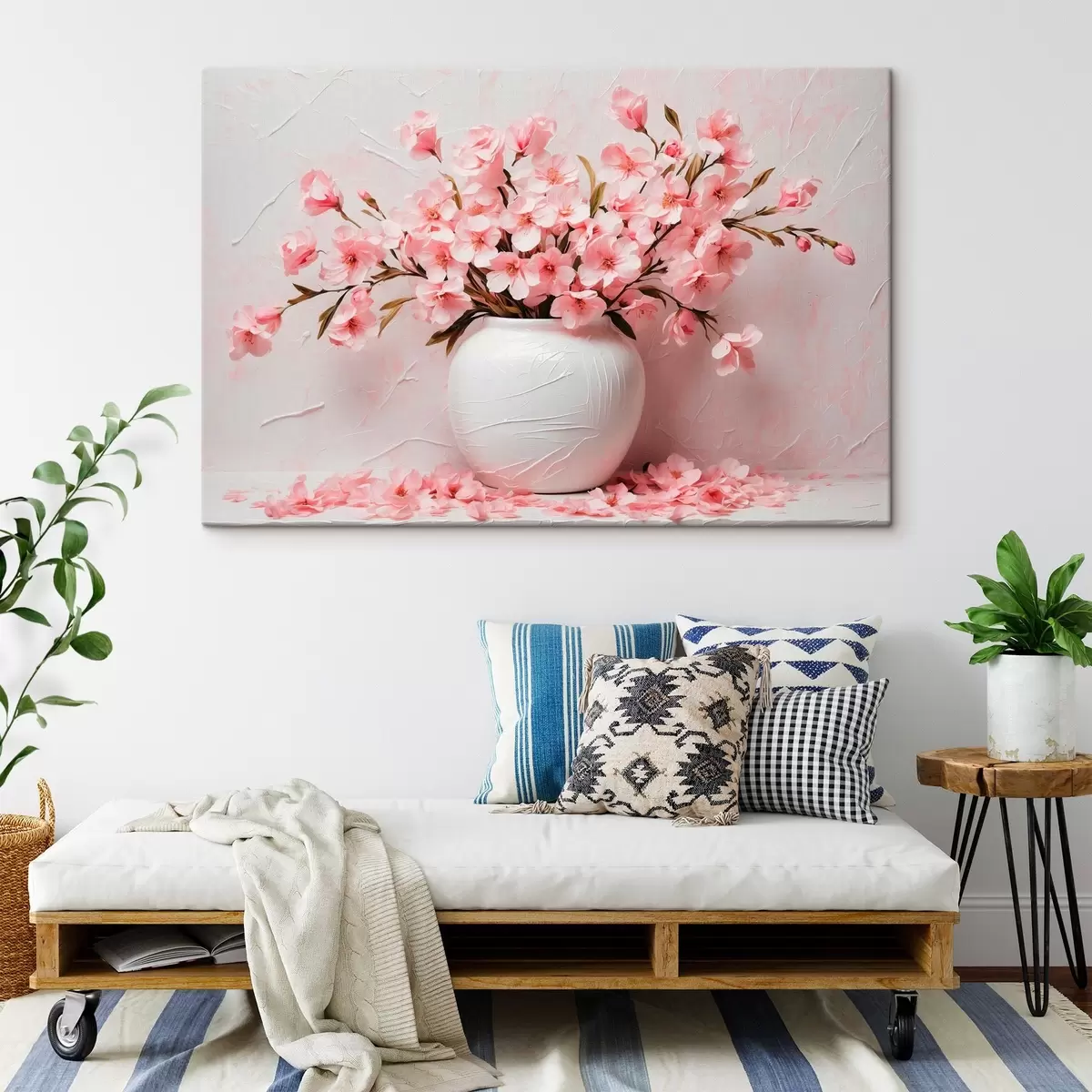 Schilderij Roze bloemen in witte vaas Art. s42915