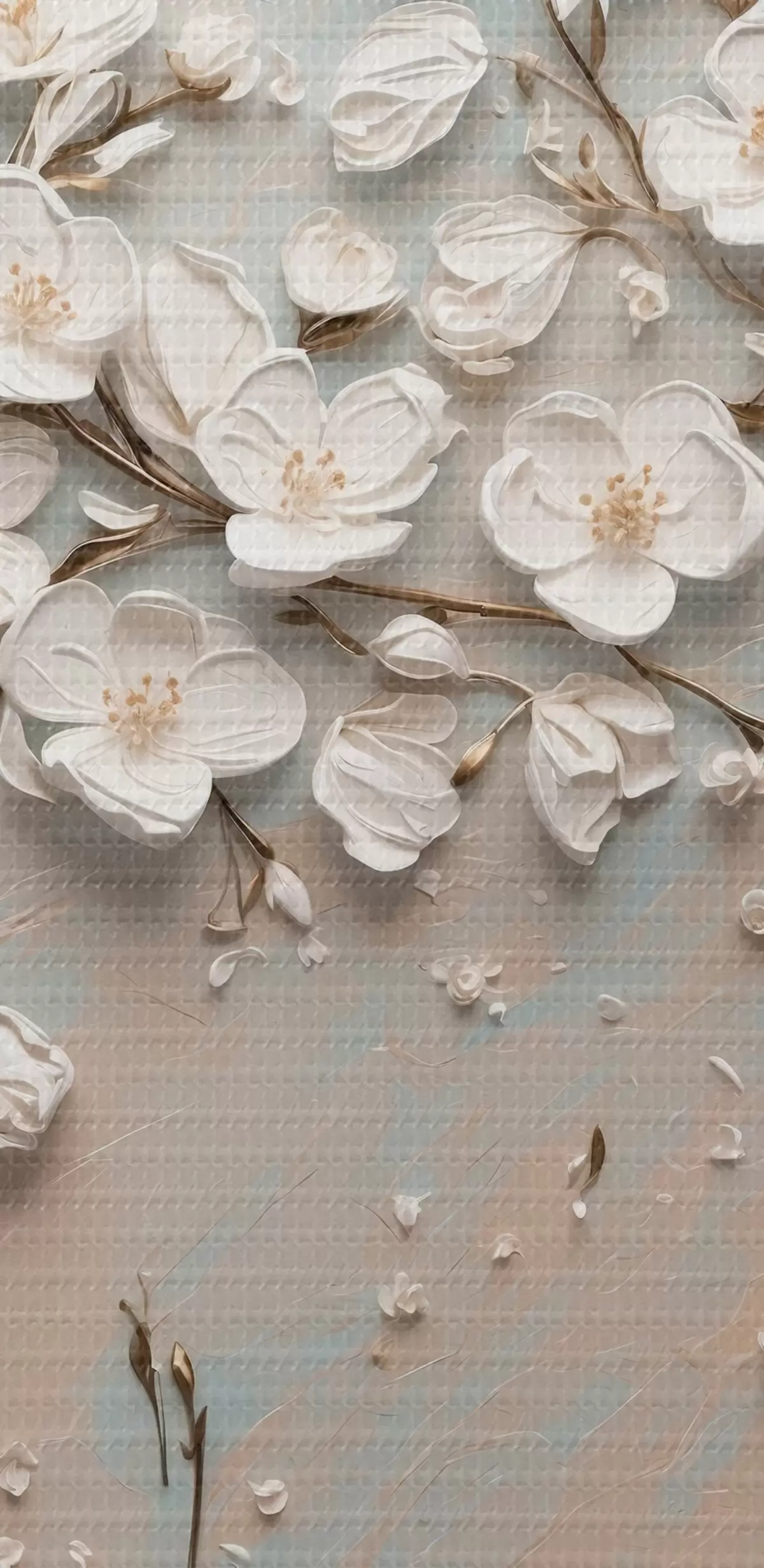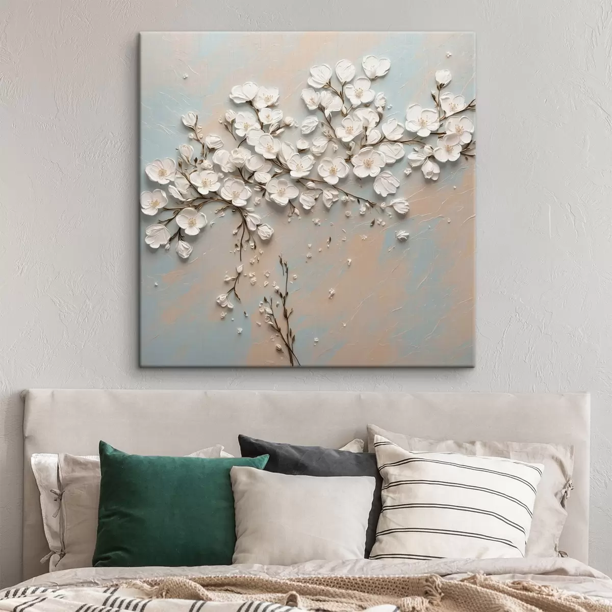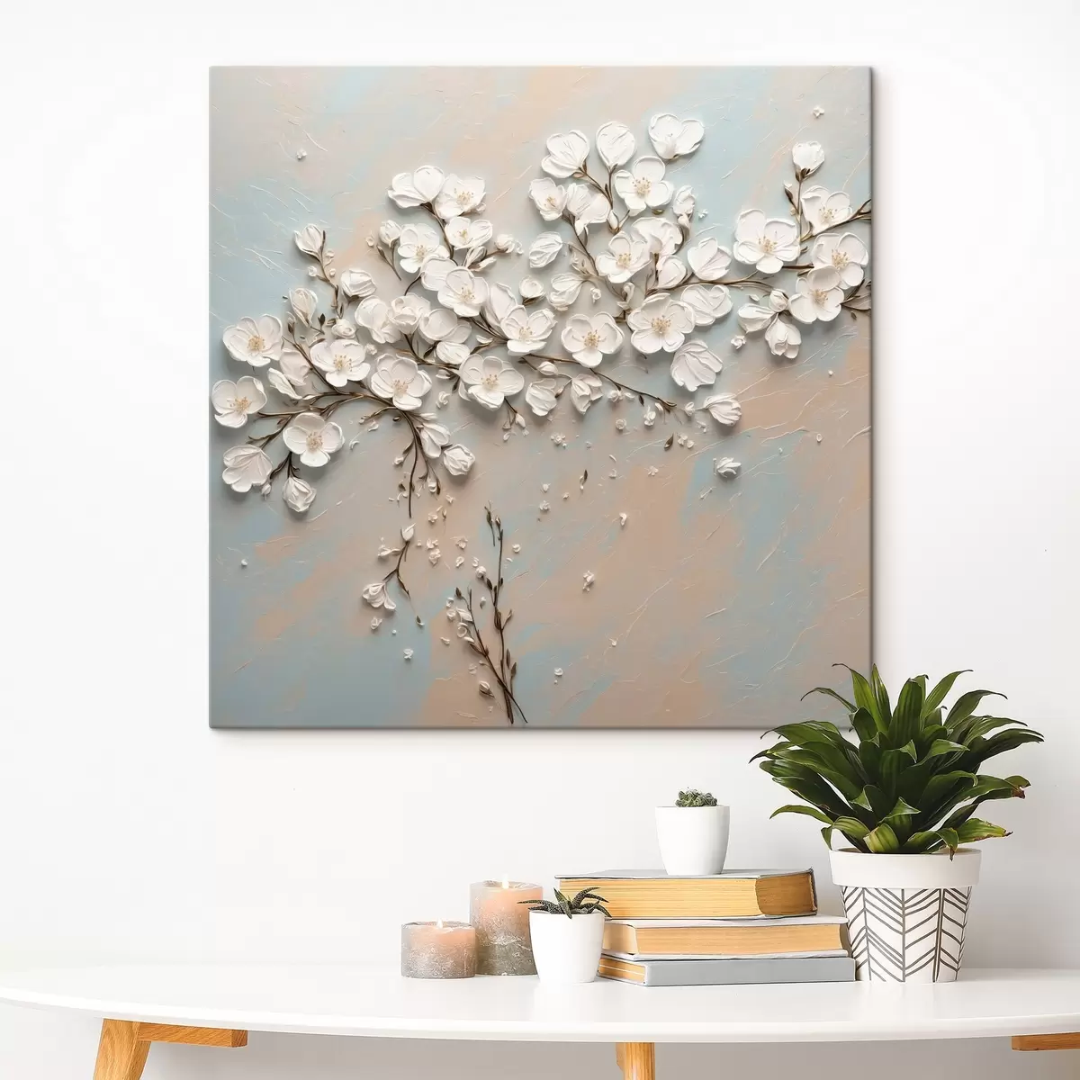 Schilderij Witte kleine bloemen in acrylschilderstijl Art. s42921