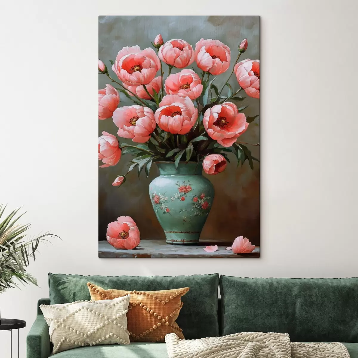 Schilderij Weelderige roze bloemen in een vaas Art. s42979