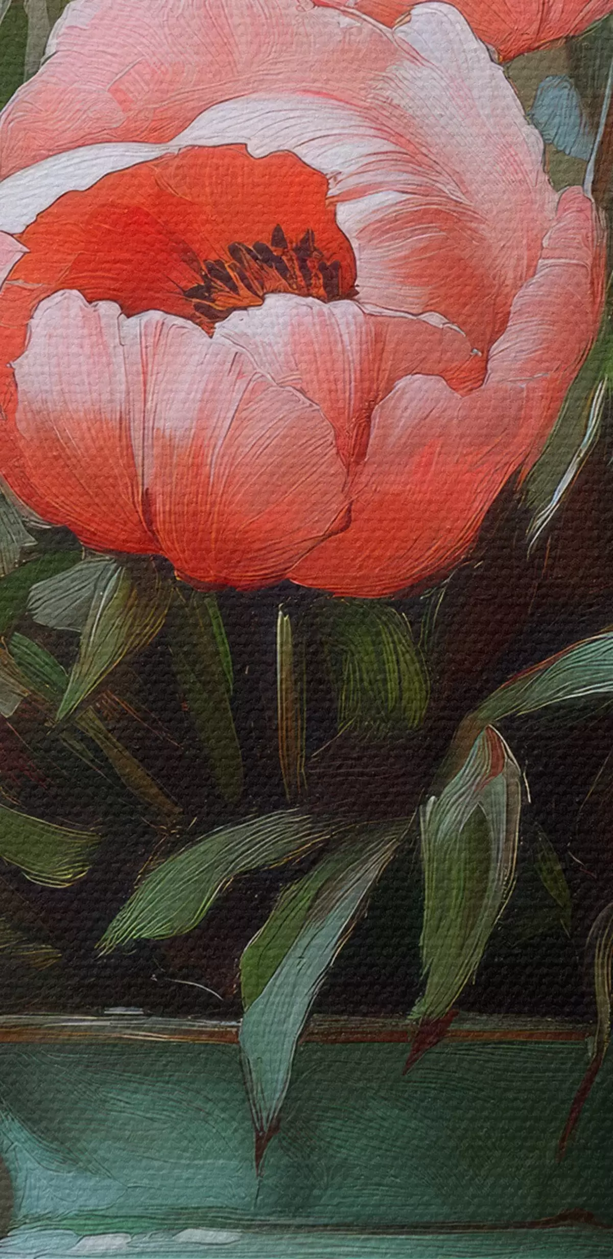 Er zijn drie soorten materiaal te bestellen: Economic Canvas - een dicht en duurzaam materiaal voor digitaal printen, identiek aan schildersdoek, waterdicht oppervlak, realistische weergave van details, materiaal met gemiddelde korrel. Premium Canvas - de textuur lijkt op die van schildersdoek (verweven kleine draden). Zachte, gedetailleerde reproductie van de afbeelding op een mat oppervlak. Eco-Premium - hoogwaardige 100% katoenen stof. Dankzij de natuurlijke katoenvezels is het materiaal duurzaam en slijtvast. Uitstekende kleurweergave en detail.