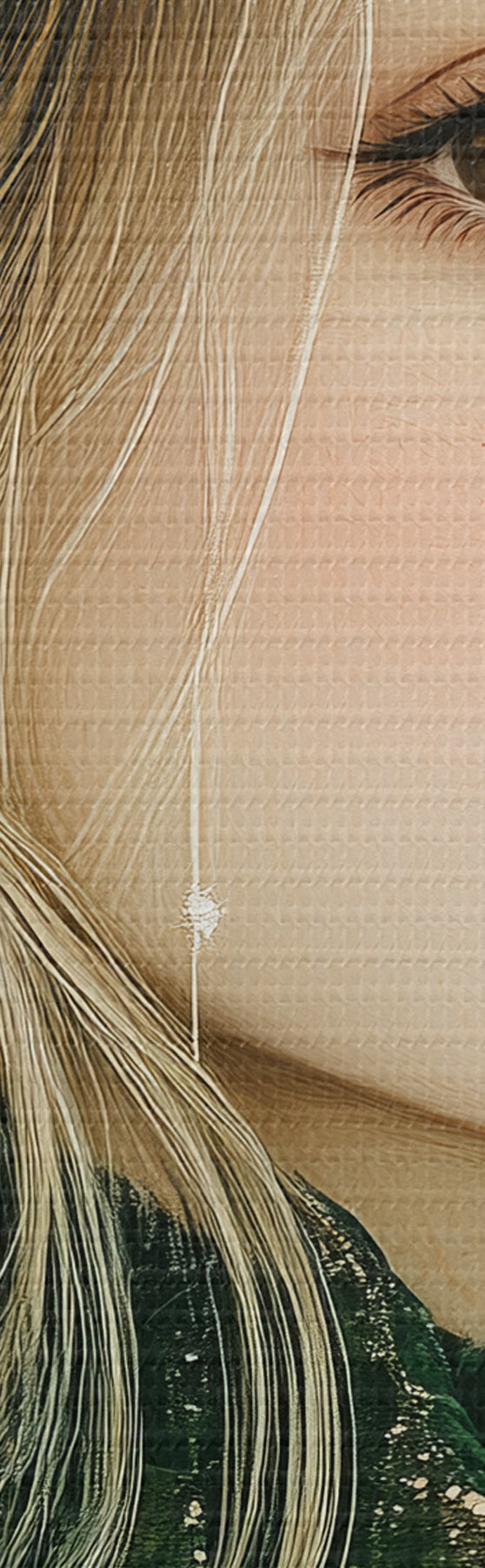 Er zijn drie soorten materiaal te bestellen: Economic Canvas - een dicht en duurzaam materiaal voor digitaal printen, identiek aan schildersdoek, waterdicht oppervlak, realistische weergave van details, materiaal met gemiddelde korrel. Premium Canvas - de textuur lijkt op die van schildersdoek (verweven kleine draden). Zachte, gedetailleerde reproductie van de afbeelding op een mat oppervlak. Eco-Premium - hoogwaardige 100% katoenen stof. Dankzij de natuurlijke katoenvezels is het materiaal duurzaam en slijtvast. Uitstekende kleurweergave en detail.