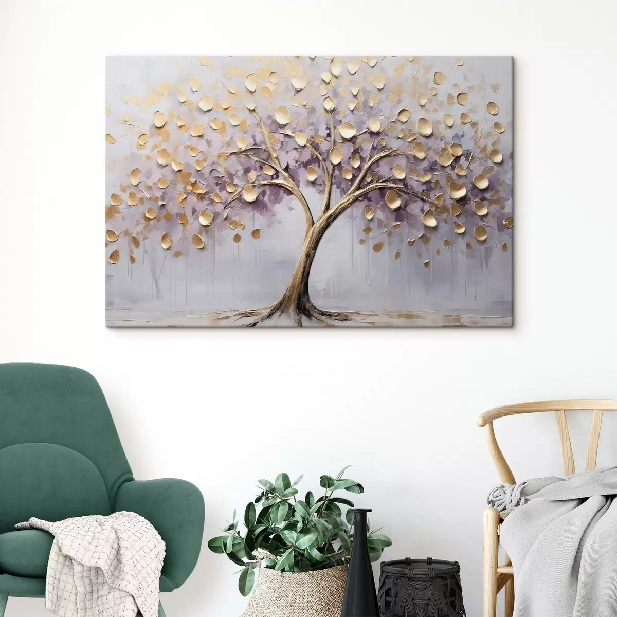 Schilderij Een boom met kleine blaadjes. Imitatie van schilderij Art. s43037