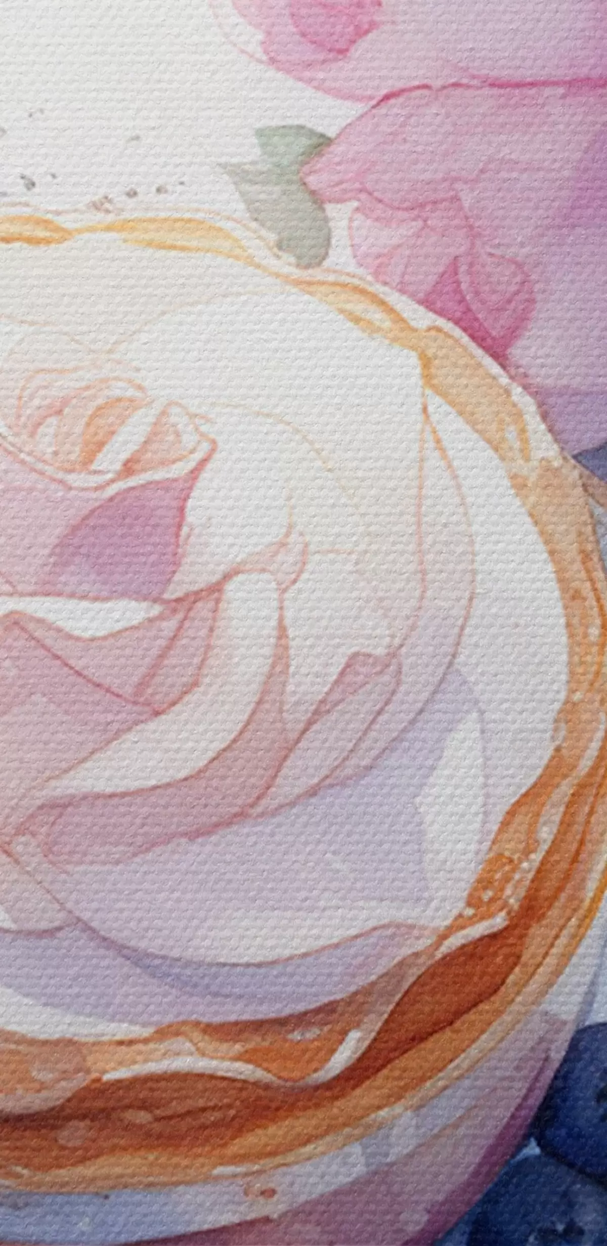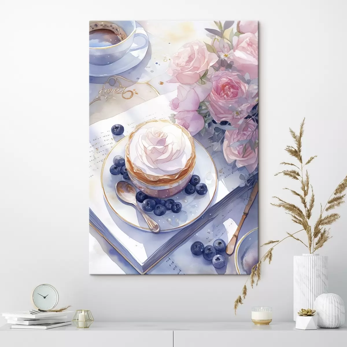 Schilderijen Bosbessen cupcake, boho stijl, aquarel, roze rozen, poëtisch  s43053