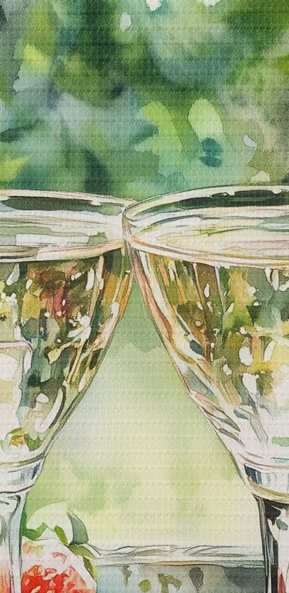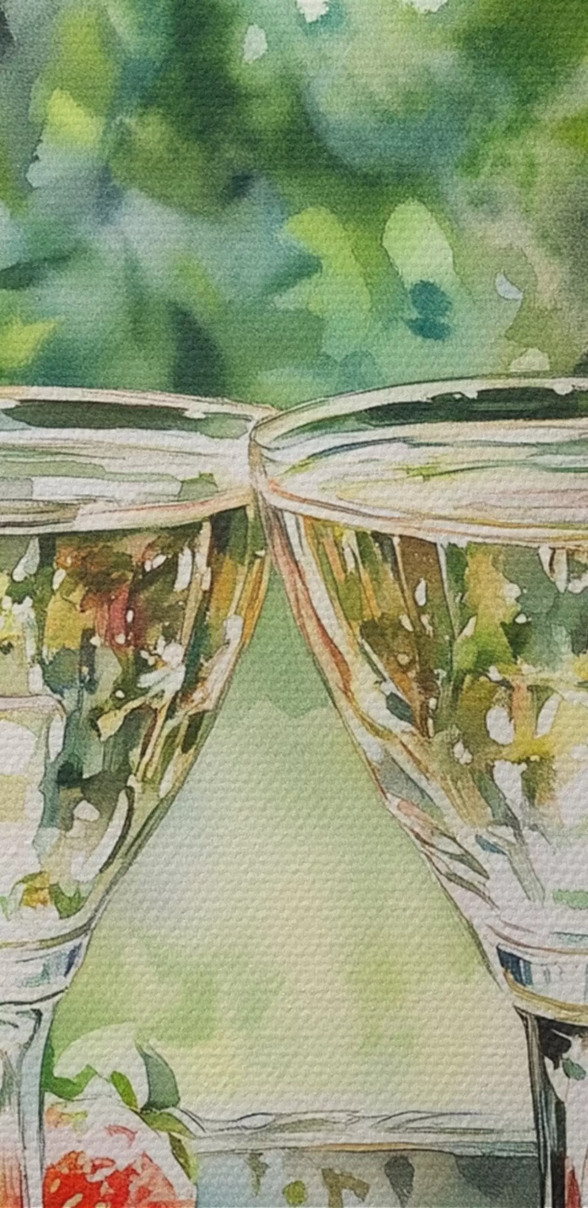 Schilderij Zomer picknick met champagne en aardbeien, aquarel tekening Art. s43055