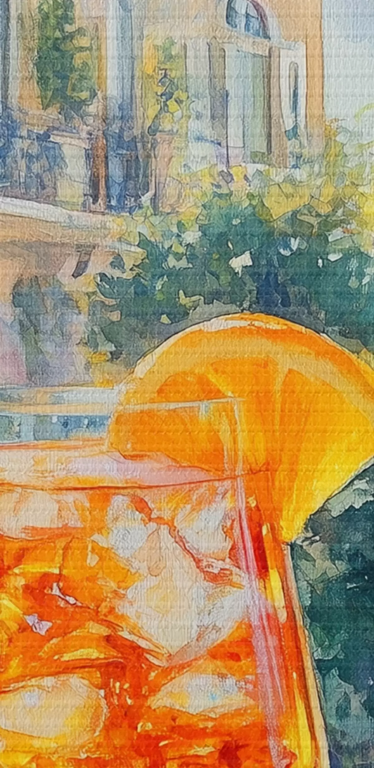 Schilderijen Cocktail met sinaasappels, aquarelstijl, Italië, Aperol Spritz, architectuur, zomertuin  s43061