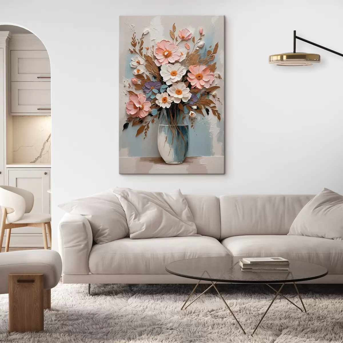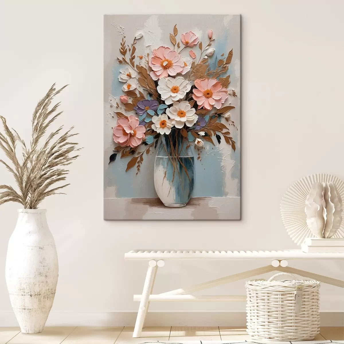 Schilderij Roze en witte bloemen in een transparante vaas Art. s43089