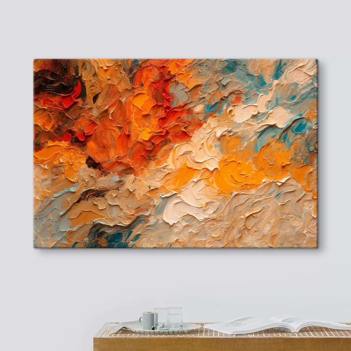 Het schilderij kan direct na ontvangst worden opgehangen. Het schilderij wordt opgespannen op een 2 cm breed houten spieraam.