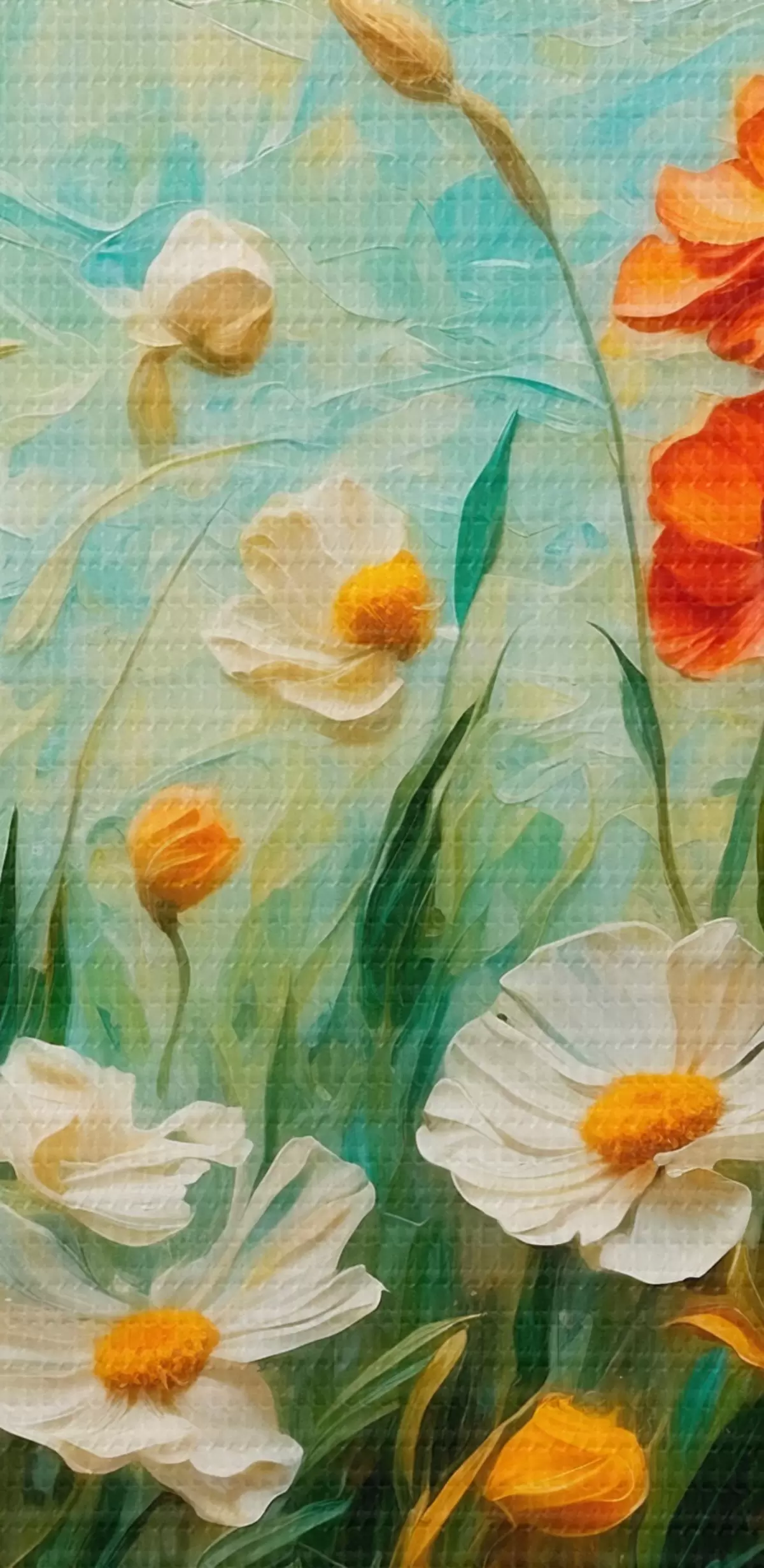 Schilderij Bloemenveld op abstracte blauwe hemelachtergrond Art. s43100