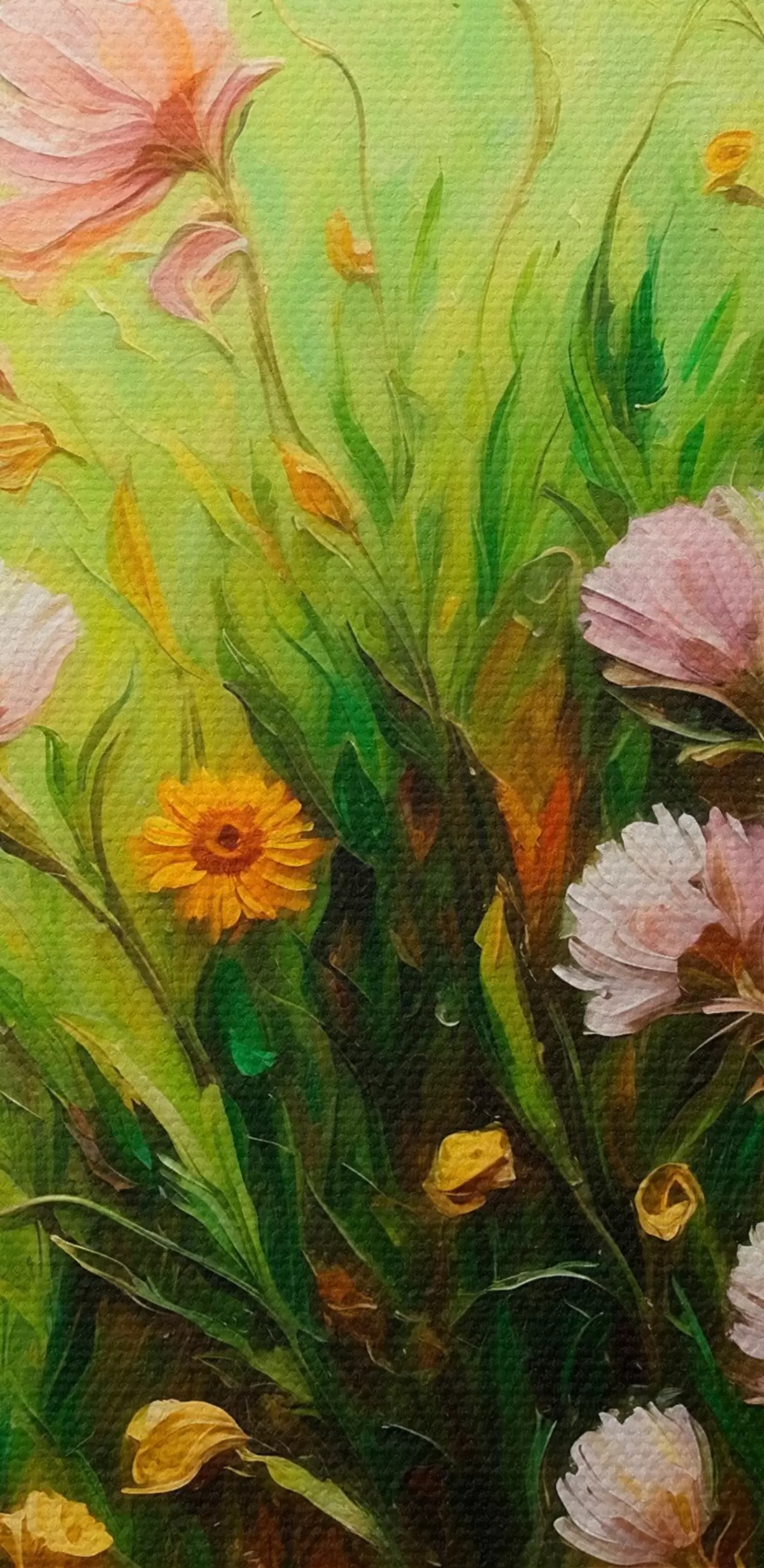 Schilderij Bloemenveld op abstracte groene achtergrond Art. s43101
