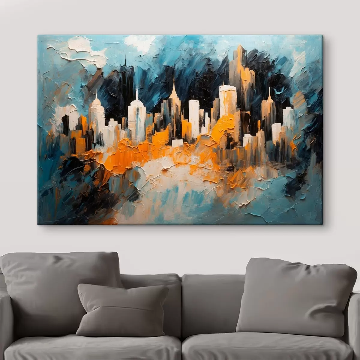 Schilderijen Abstracte stad in olieverfstijl s43109