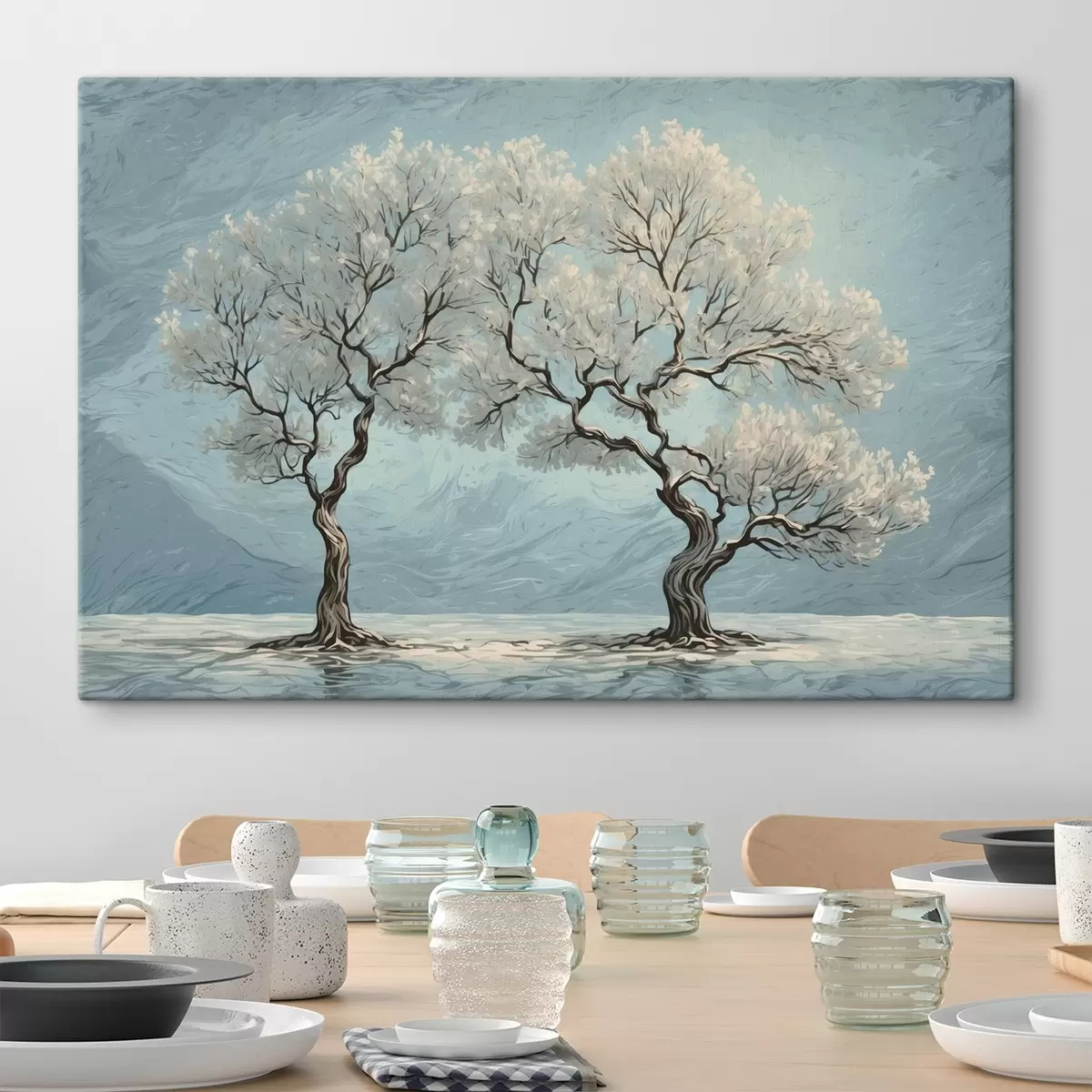 Schilderij Witte bomen in acrylschilderstijl Art. s43112