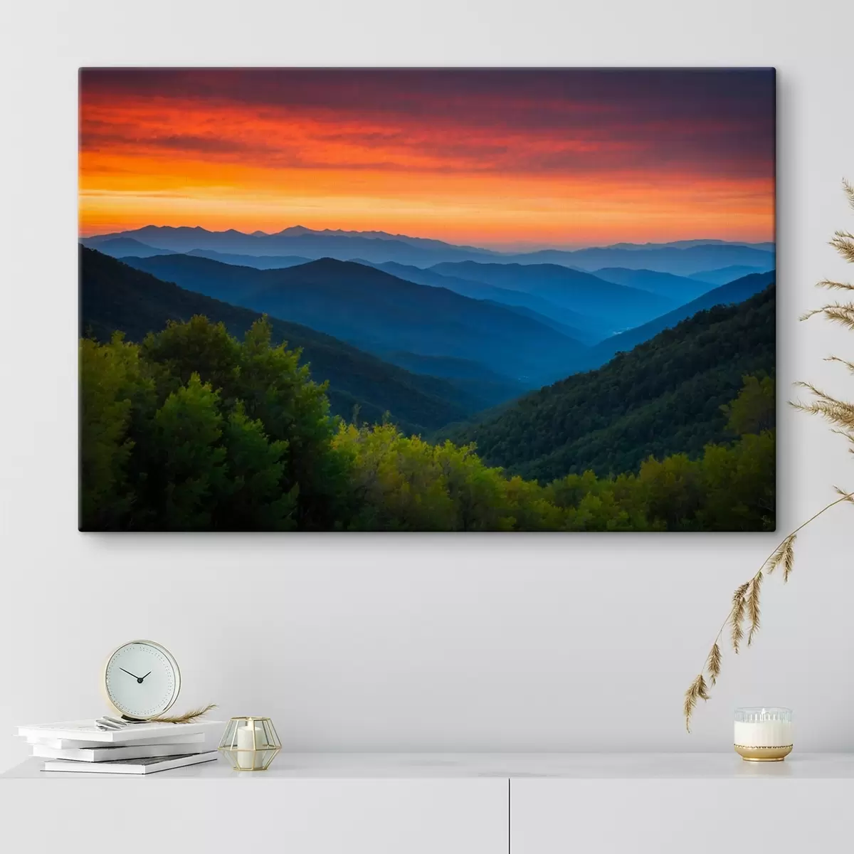 Schilderij Uitzicht vanaf de bergen bij zonsopgang Art. s43119