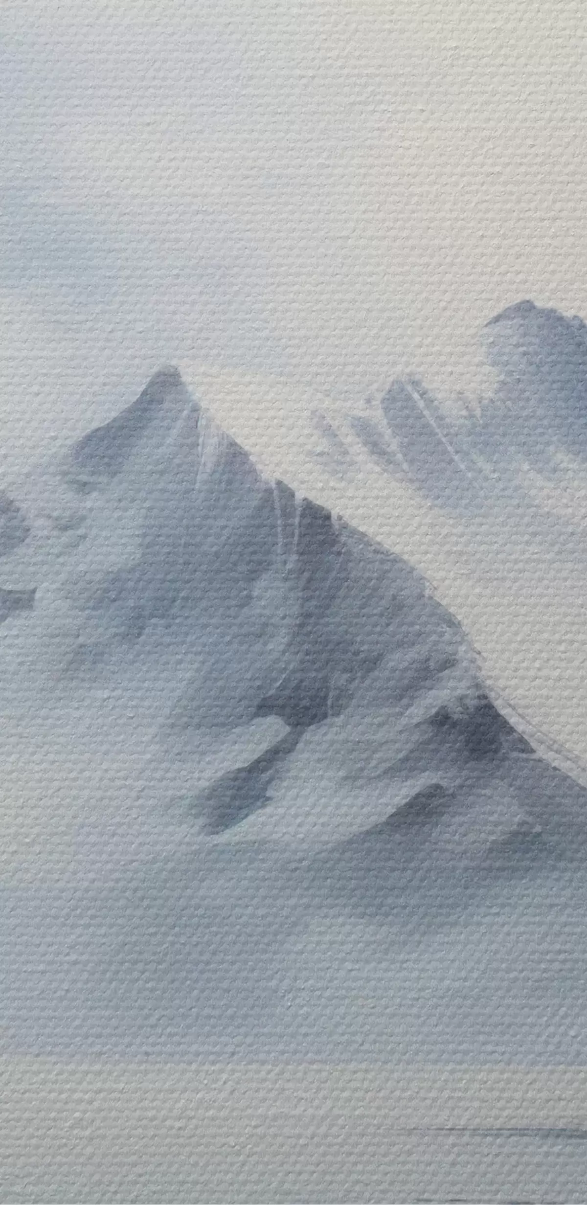Schilderij Besneeuwd berglandschap met een meer op de voorgrond, de toppen zijn bedekt met sneeuw en de lucht is bewolkt Art. s43174