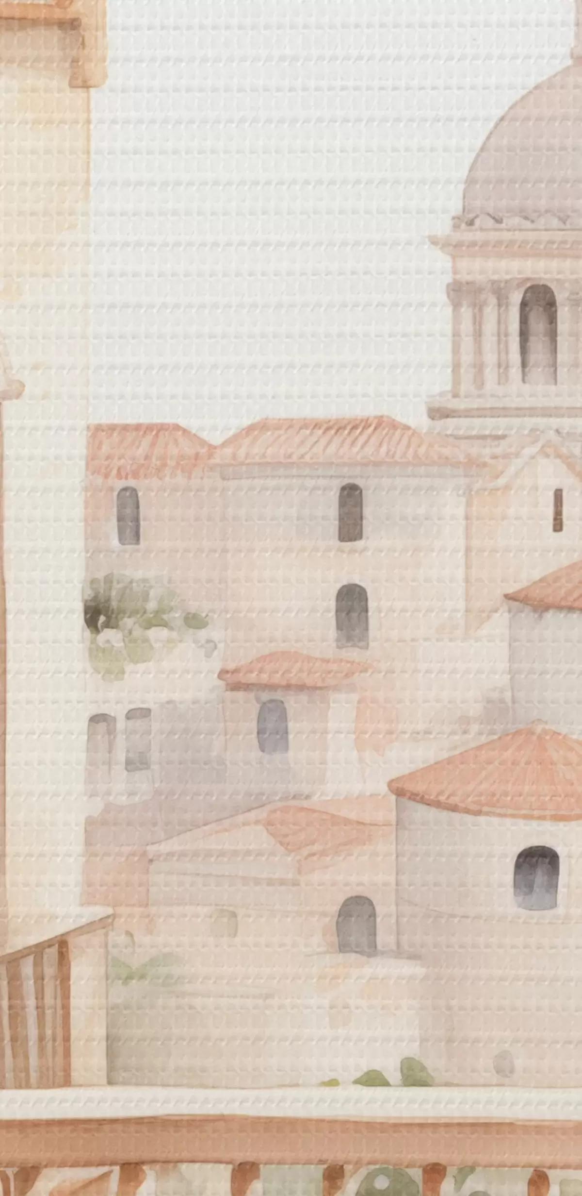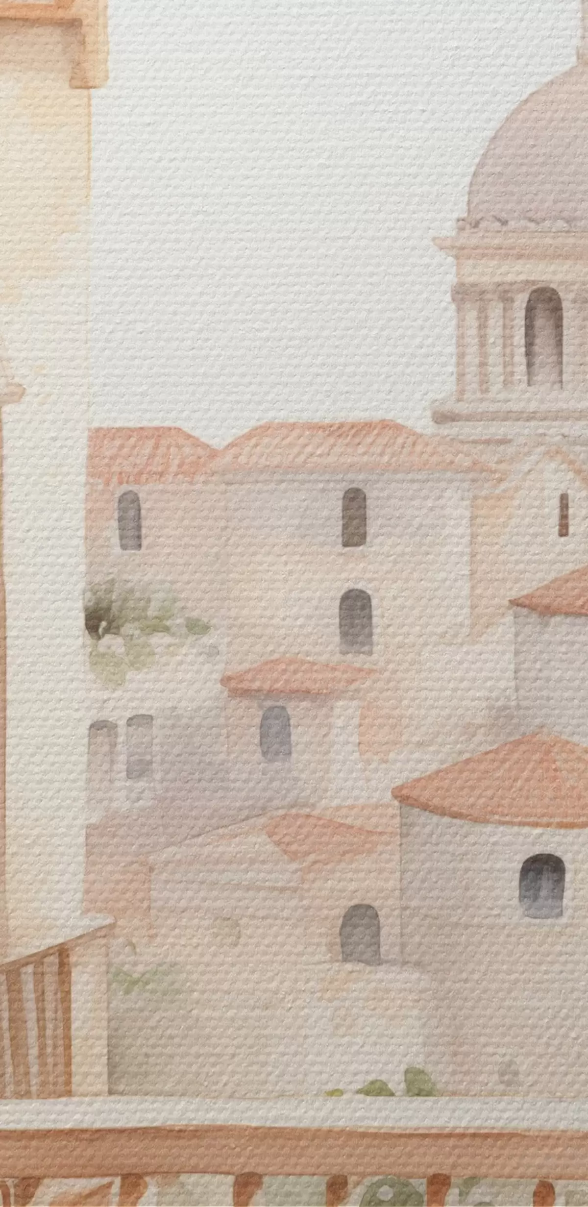 Schilderij Esthetisch zomerbalkon, Spanje, oude architectuur, blomming, aquarel stijl Art. s43180