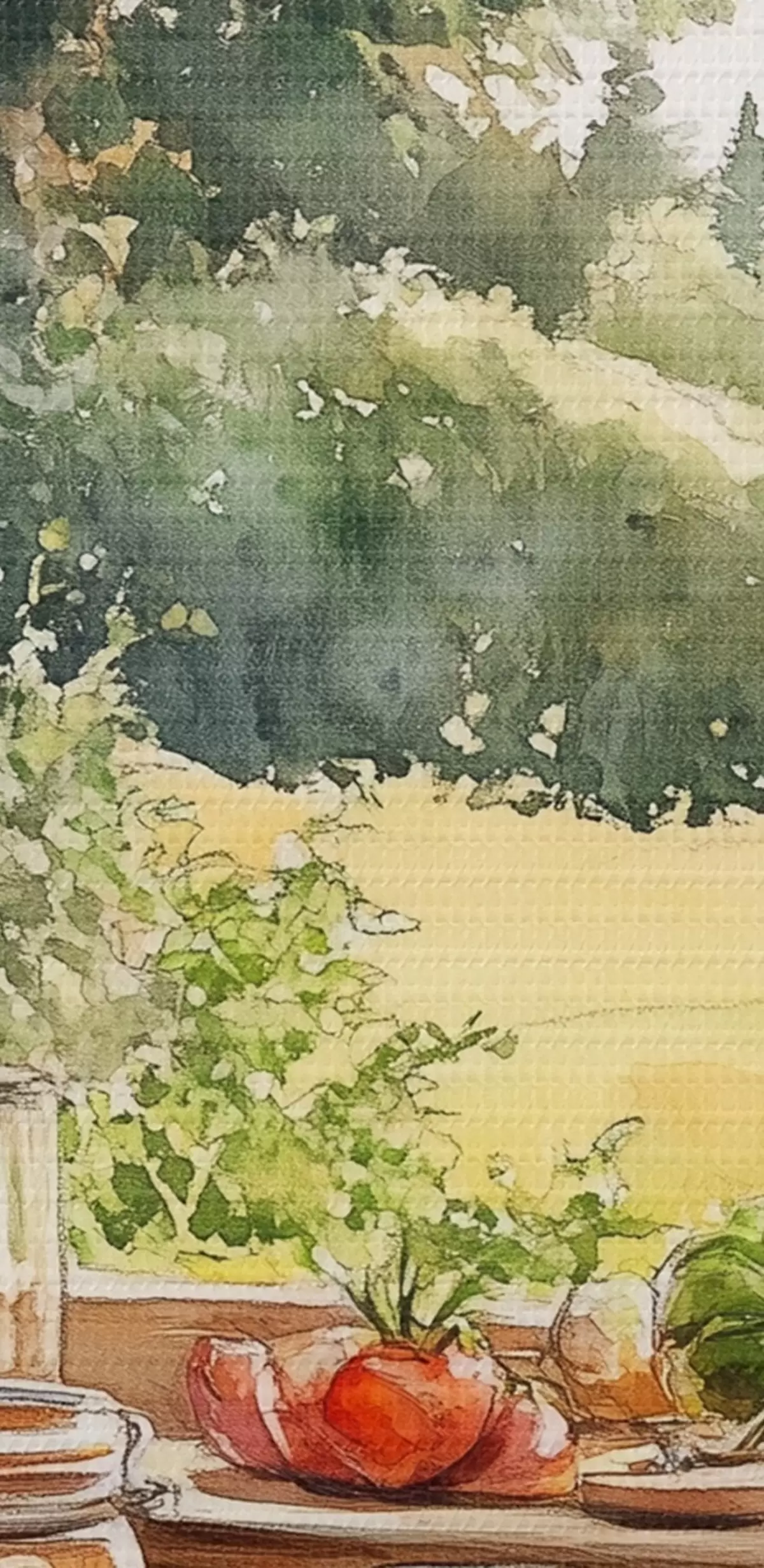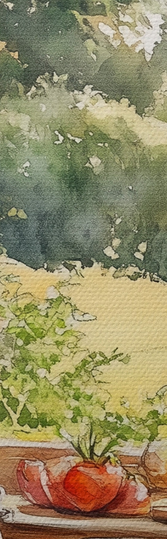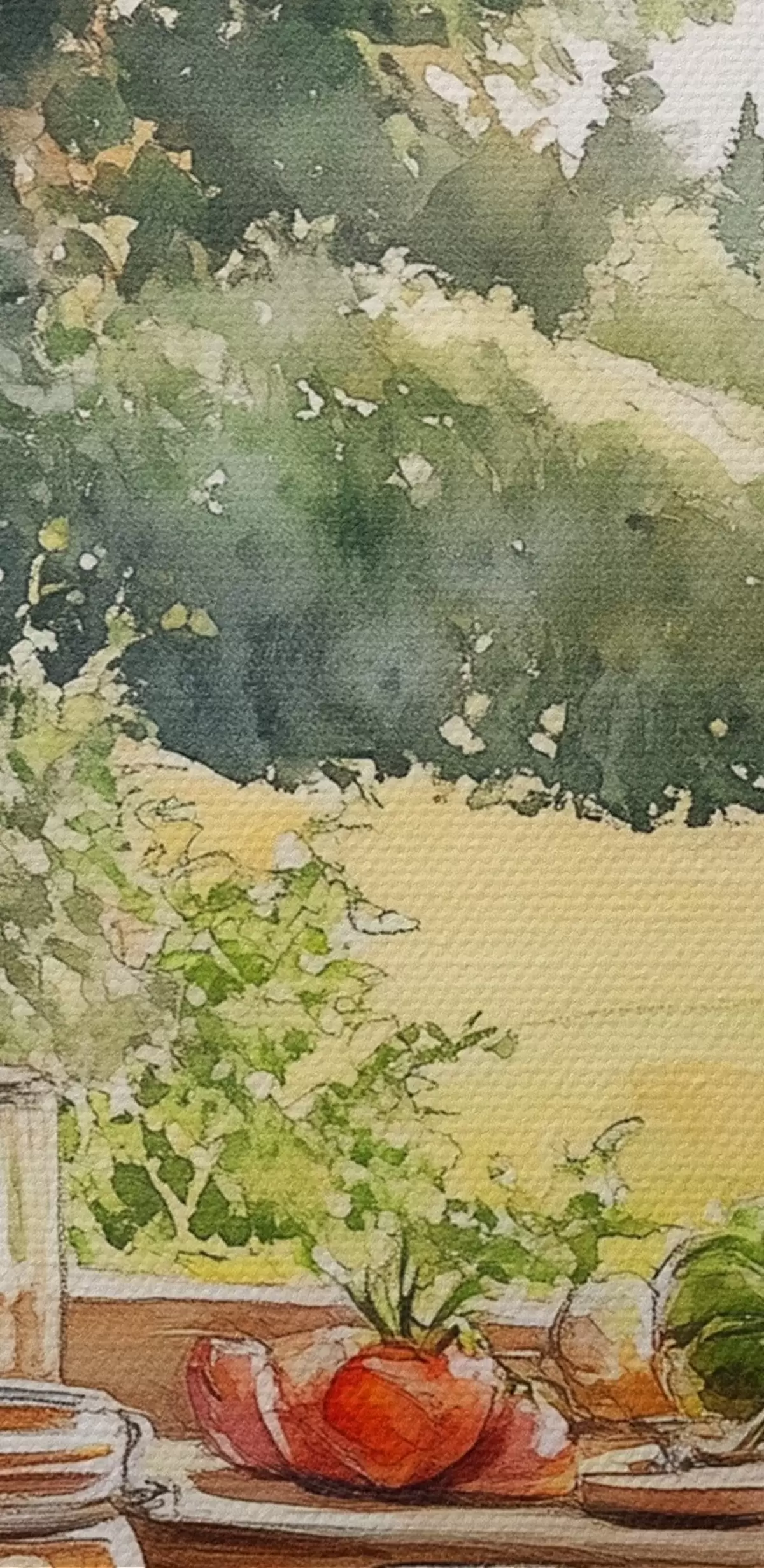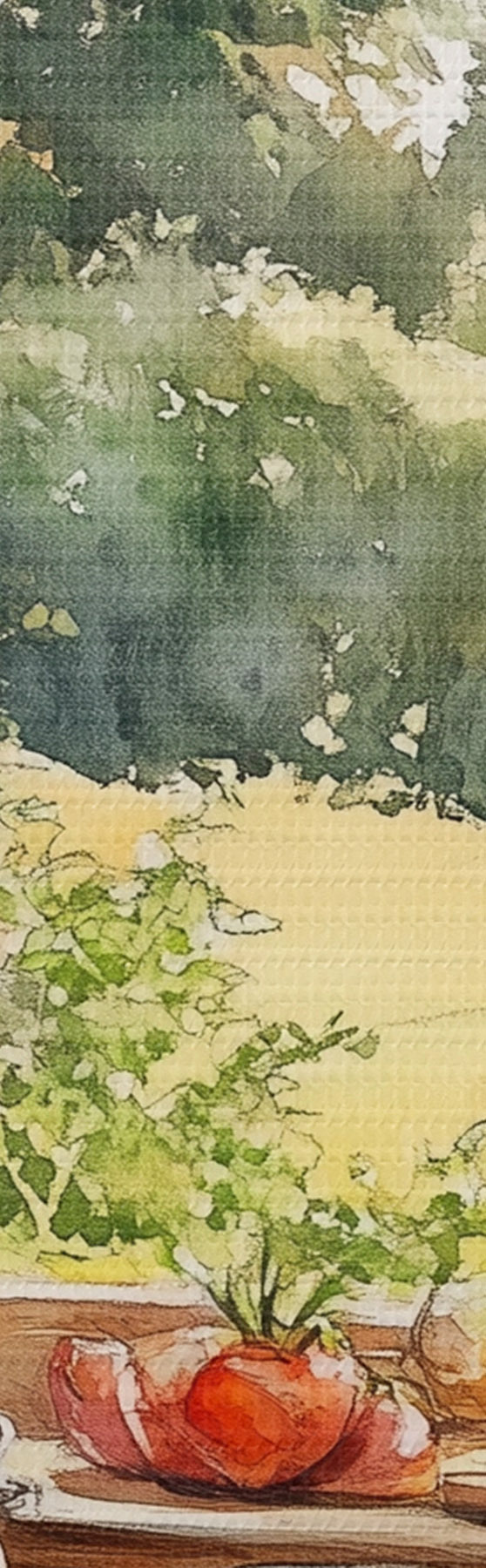 Schilderijen Dorpse esthetiek, houten huis, zomernatuur, groenten, aquarel stijl s43185