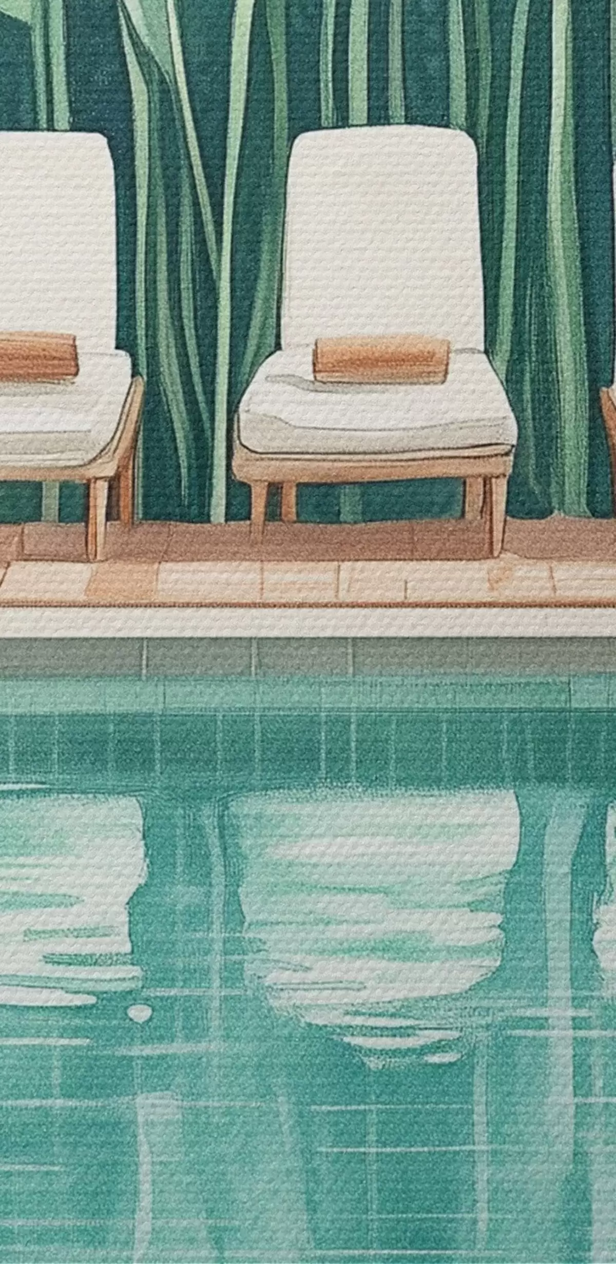 Schilderijen Esthetisch zomerzwembad in de tropische tuin, aquarelstijl s43192