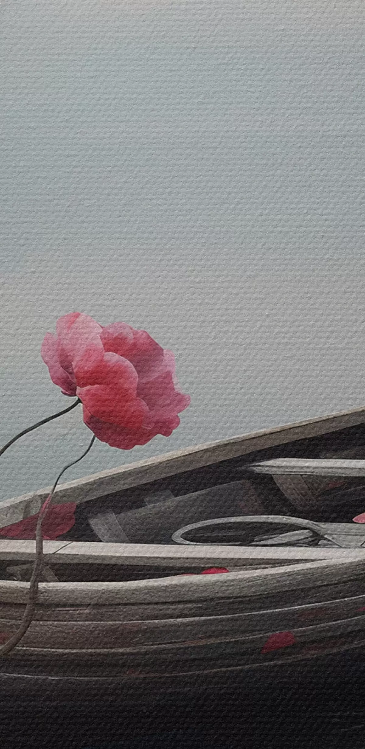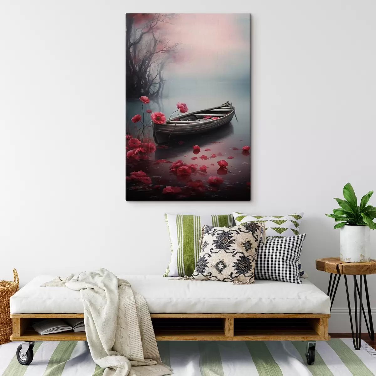 Schilderij Boot en klaproosbloemen op het meer Art. s43203