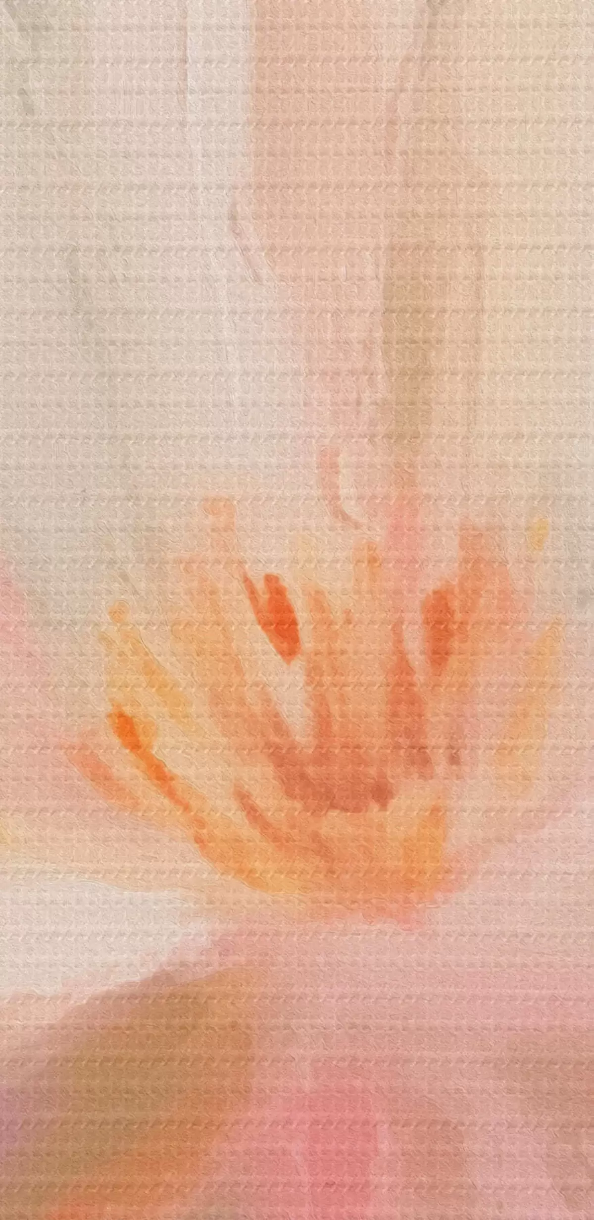 De fijne weving van draden op dit doek lijkt op het oppervlak van professionele schildersdoeken.