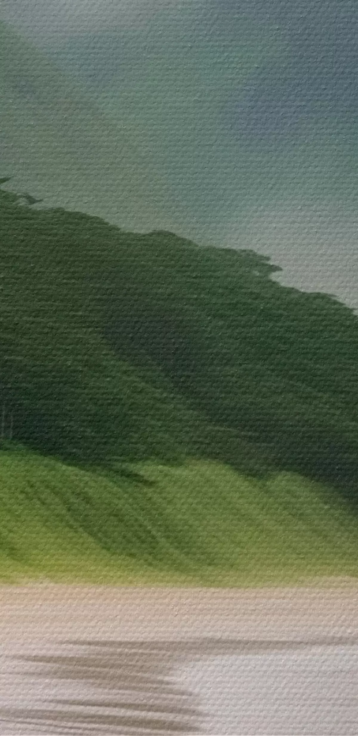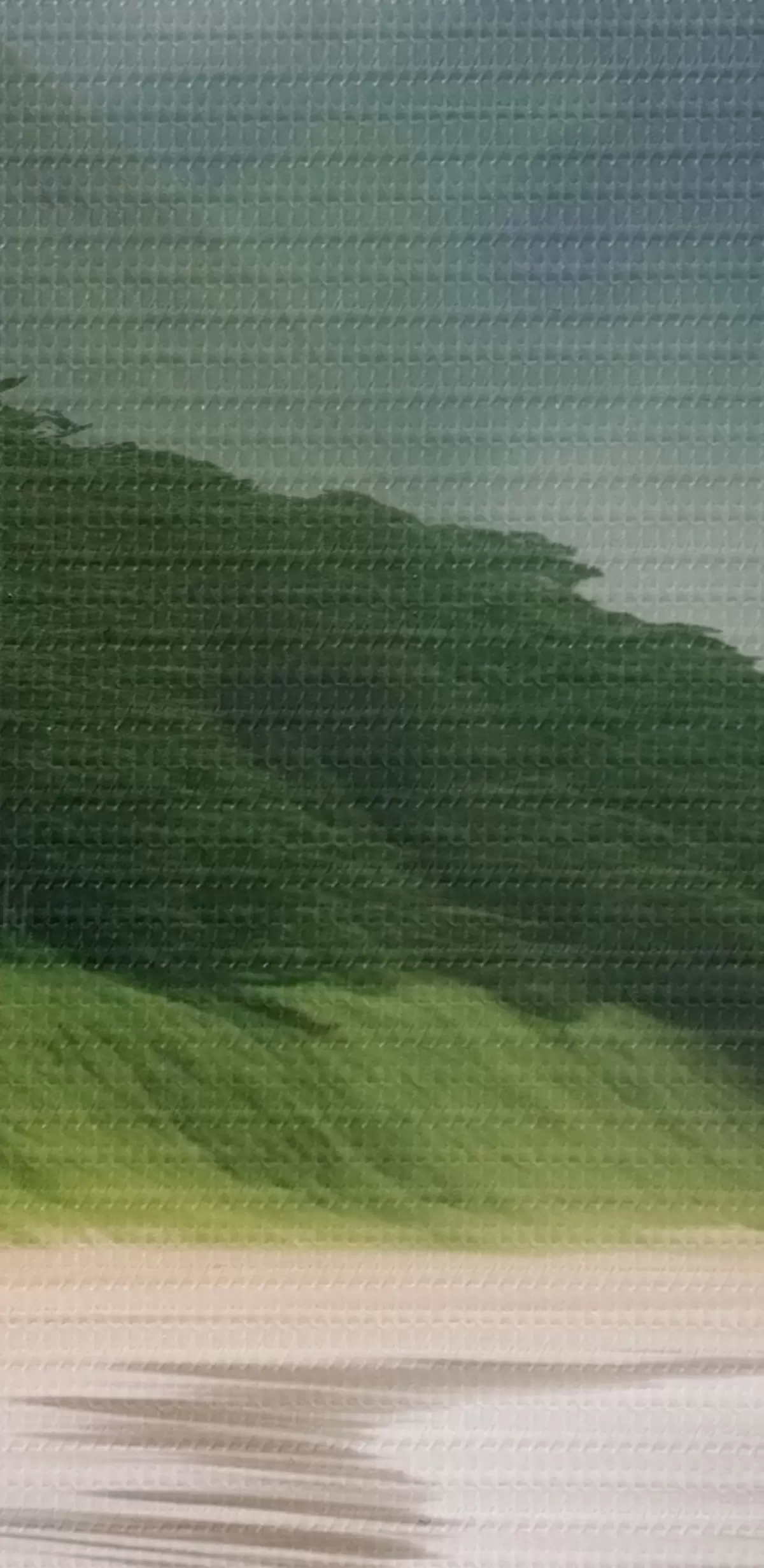 Schilderij Mistig strand bij groene hellingen Art. s43271