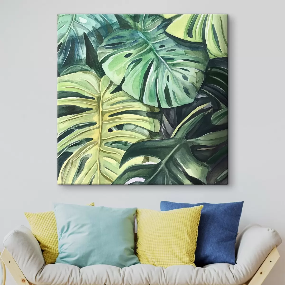 Schilderij Tropische bladeren op witte achtergrond Art. s43305