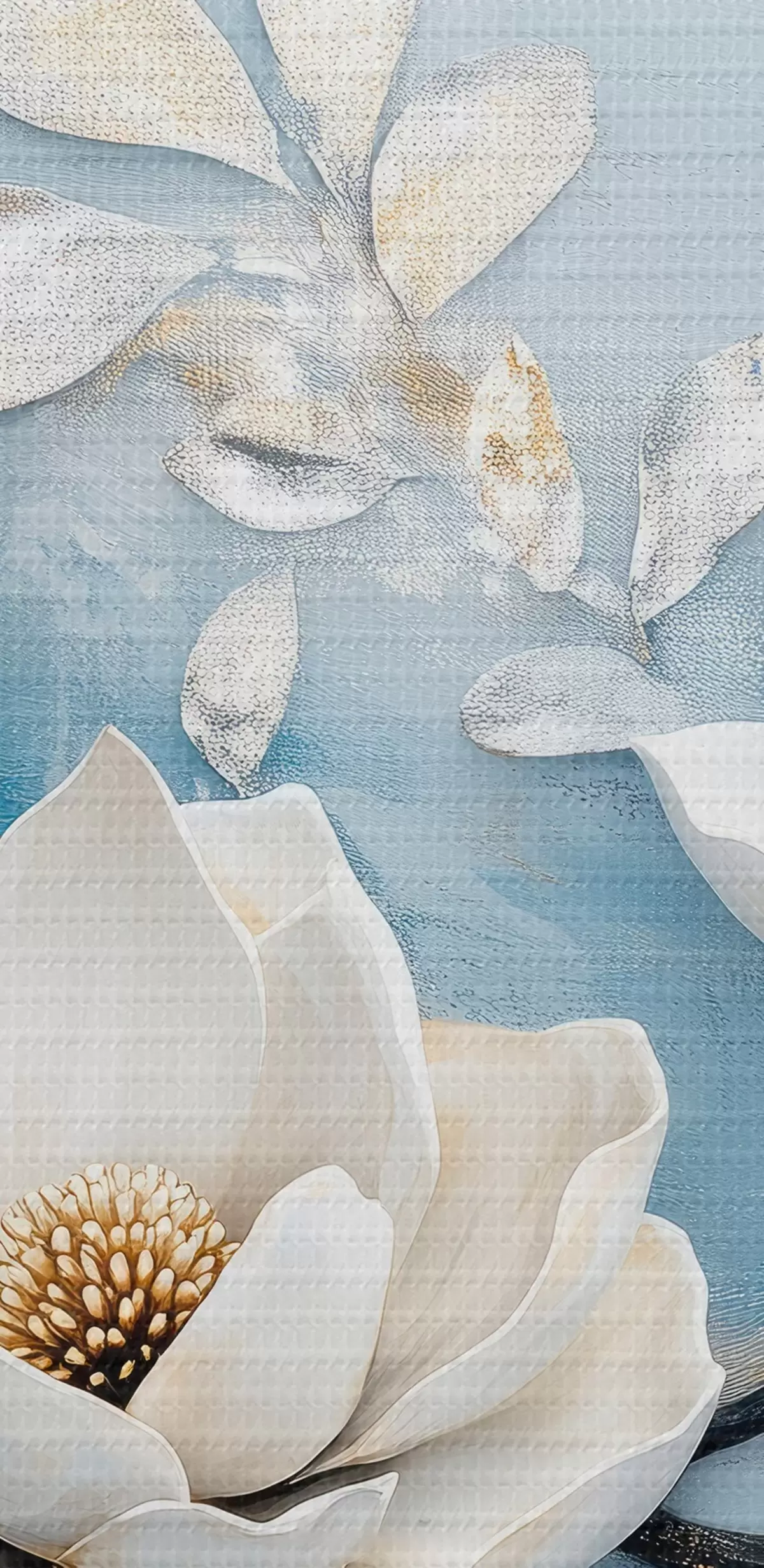 Schilderijen Magnolia tak op een abstracte blauw-gele achtergrond s43323