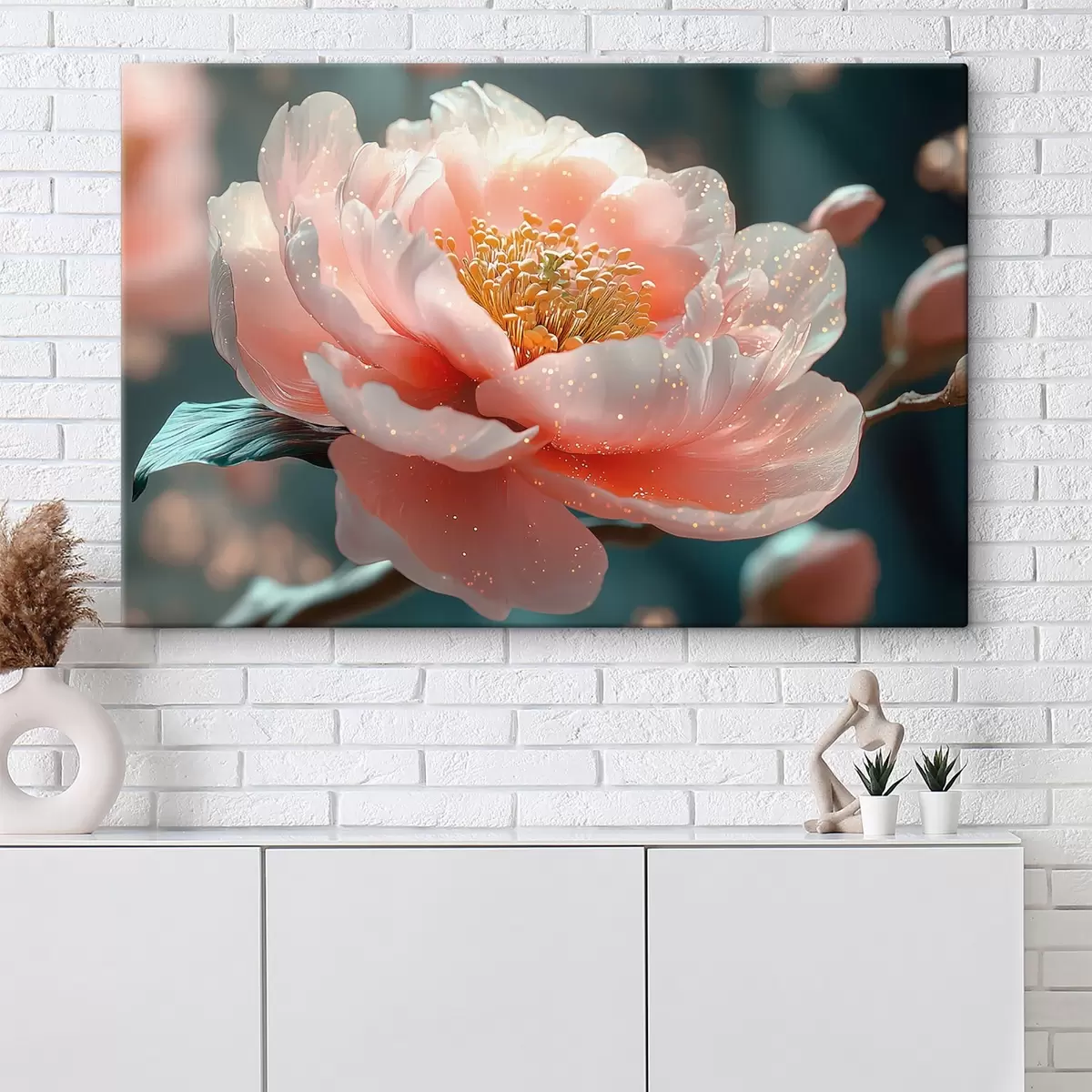 Schilderij Delicate bloem op een tak met zonnestralen Art. s43326