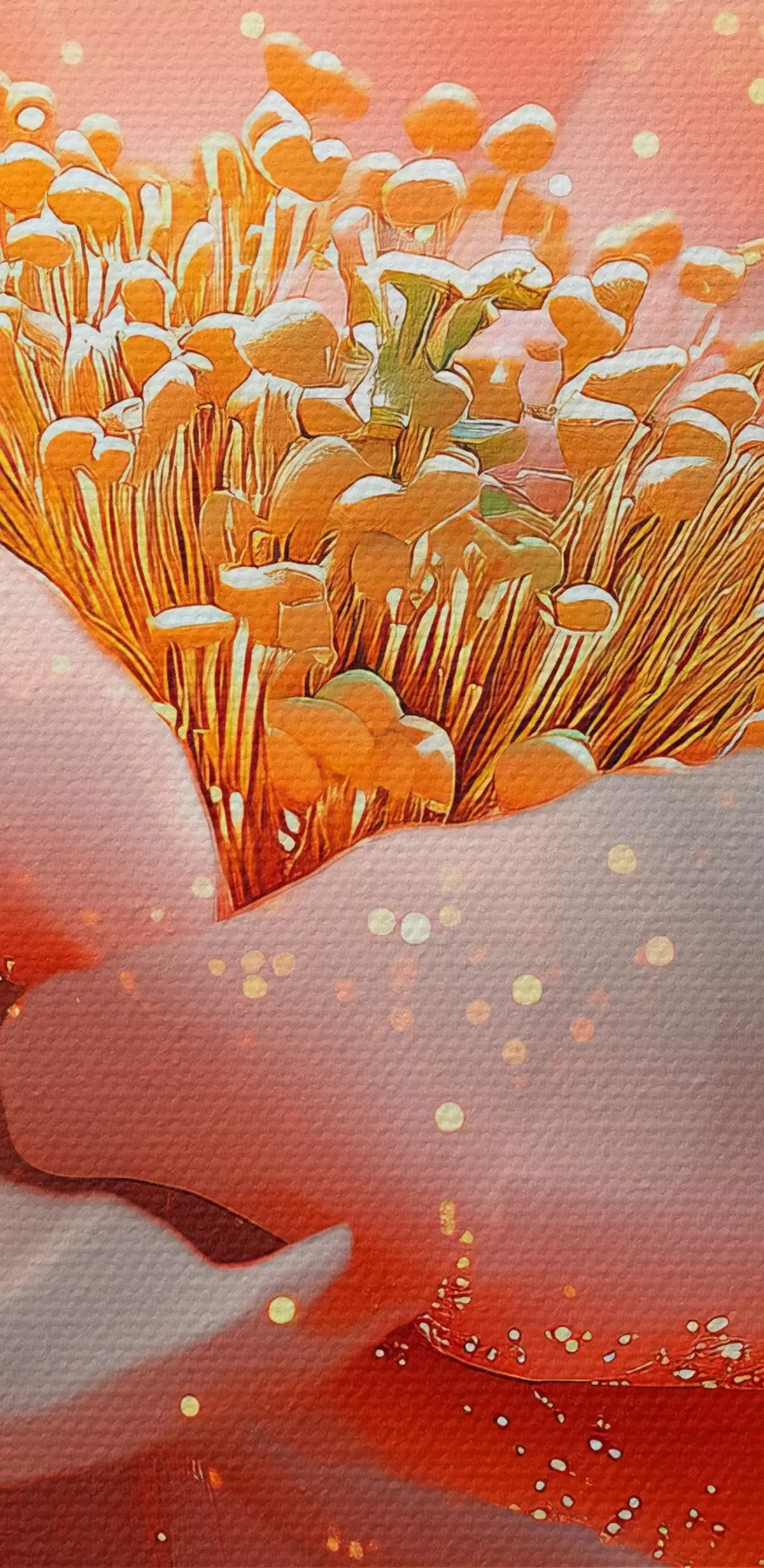 Het schilderij kan direct na ontvangst worden opgehangen. Het schilderij wordt opgespannen op een 2 cm breed houten spieraam.