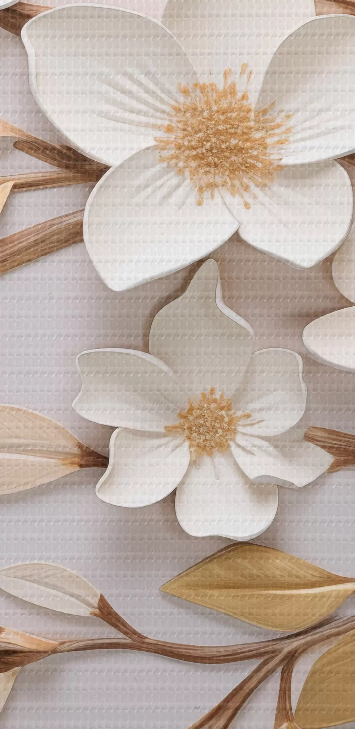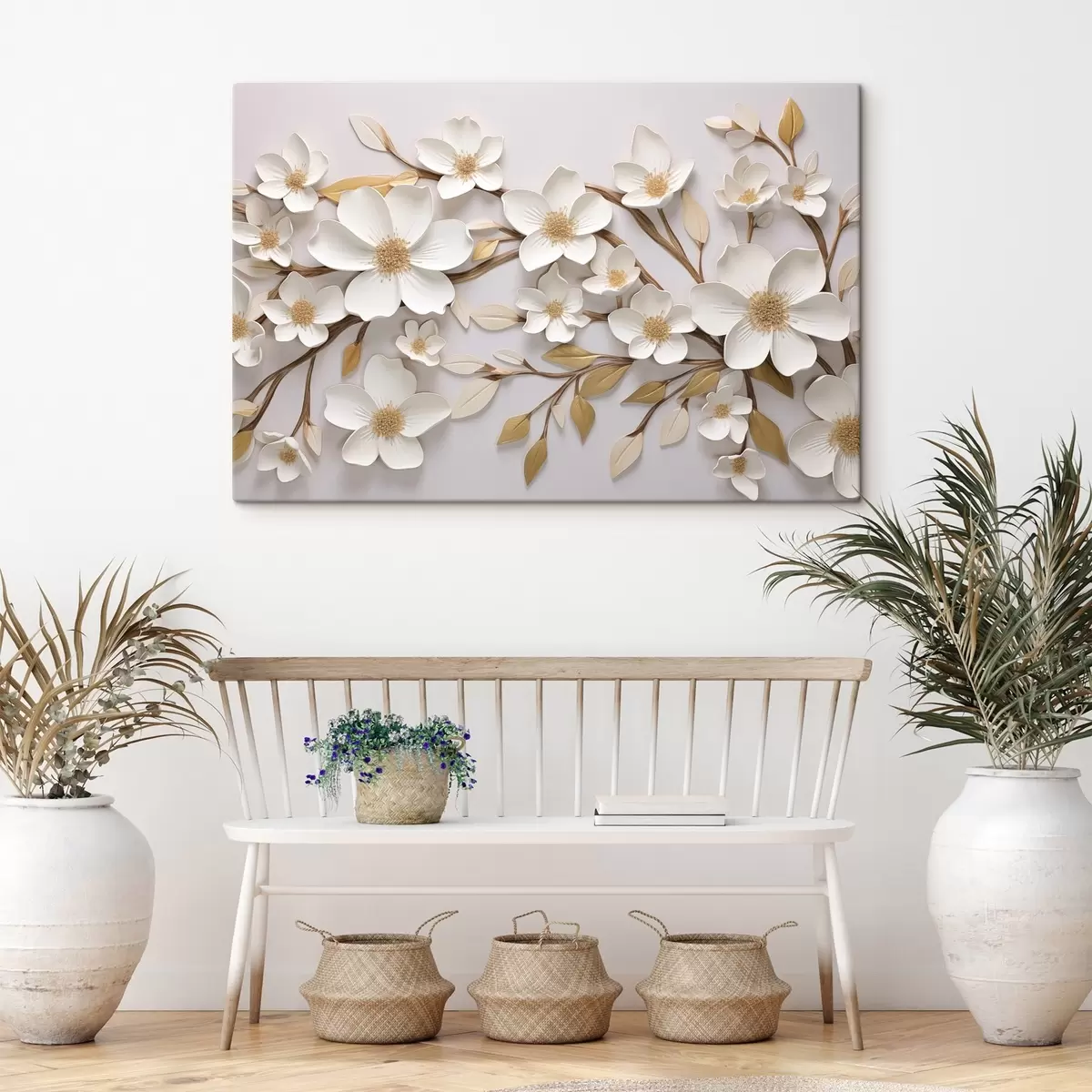 Schilderij Witte bloemen in de stijl van een reliëf fresco met gele accenten Art. s43331
