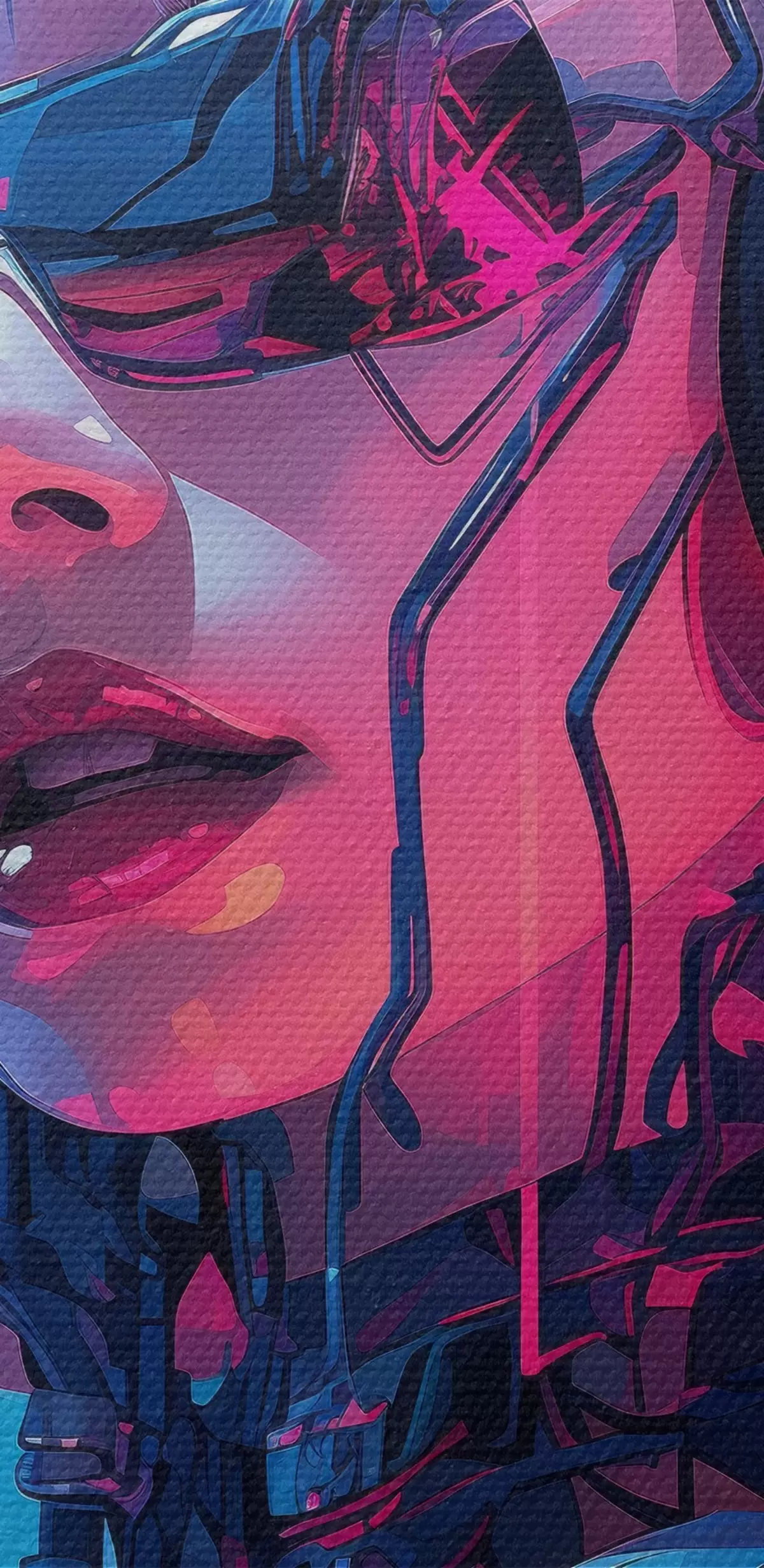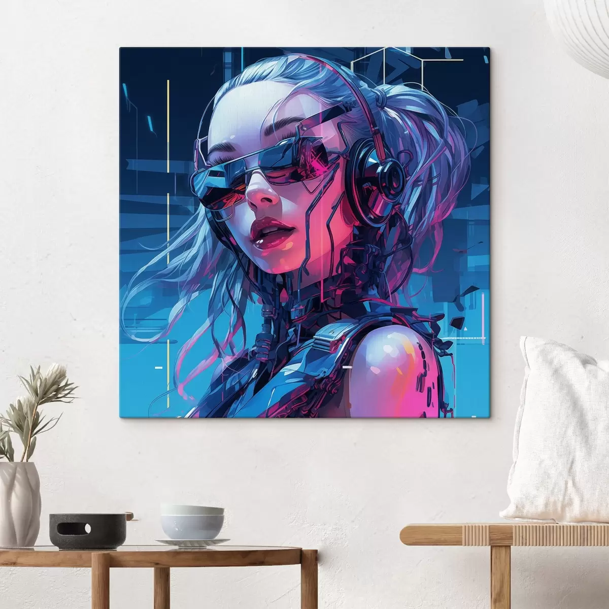 Schilderij Futuristisch meisje in bril met neonkleureffect Art. s43381