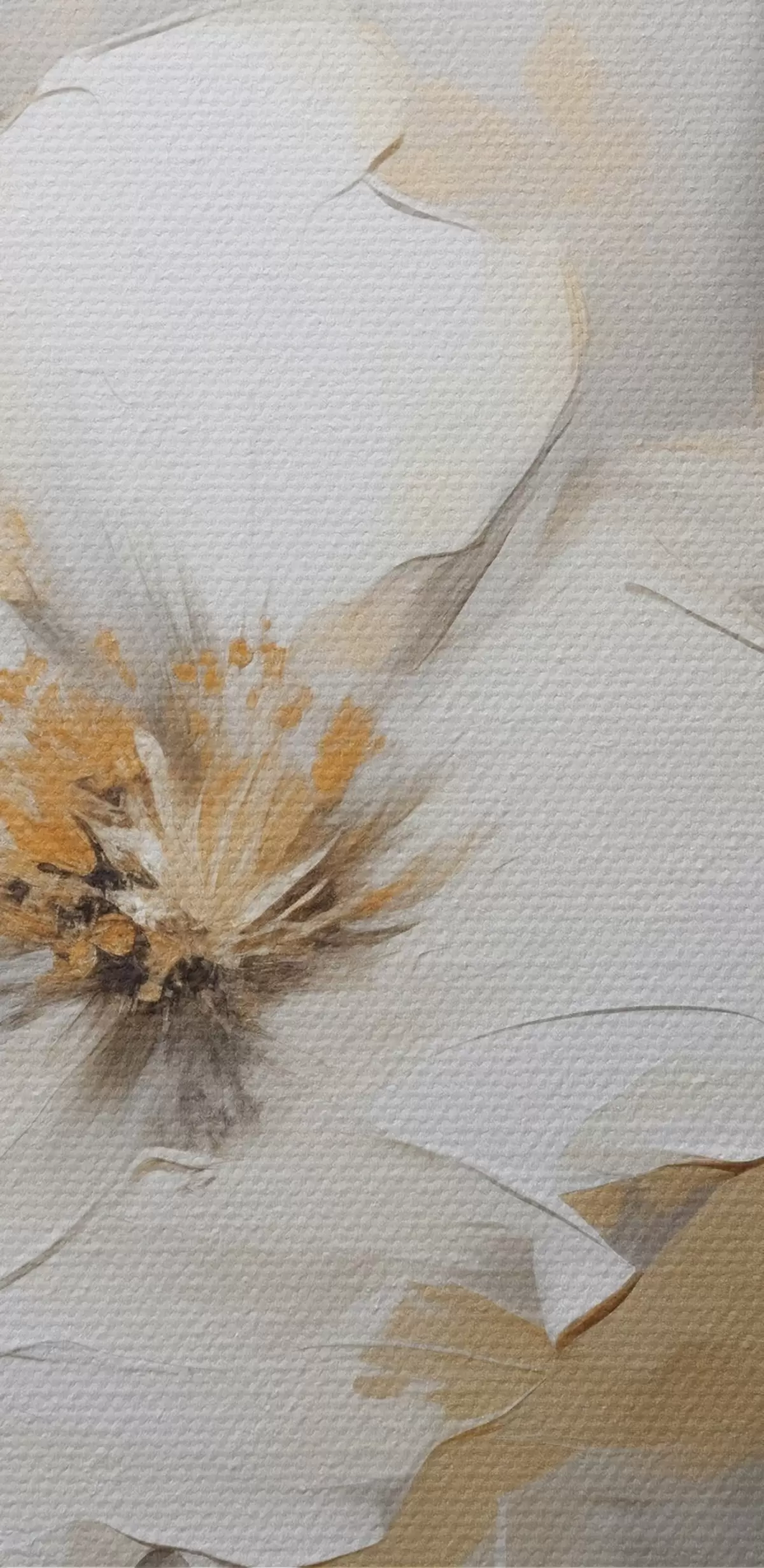 Schilderij Witte bloemen met gele bladeren op een witte achtergrond, dikke penseelstreken imitatie, getextureerde moderne stijl Art. s43389