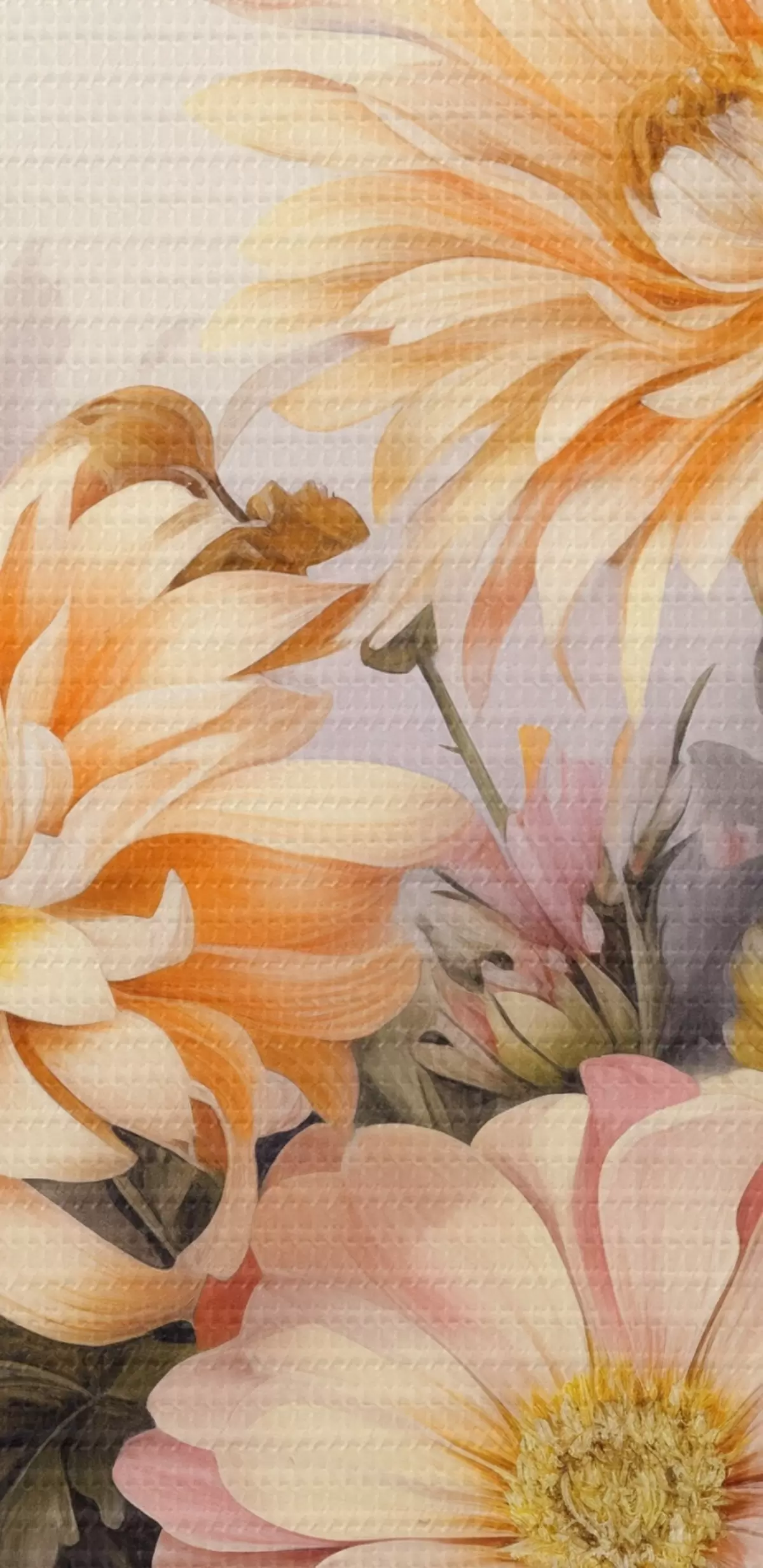 Schilderij Een verzameling roze, gele en oranje bloemen, lichte achtergrond, zachte kleuren, vintage stijl, botanische illustratie Art. s43401