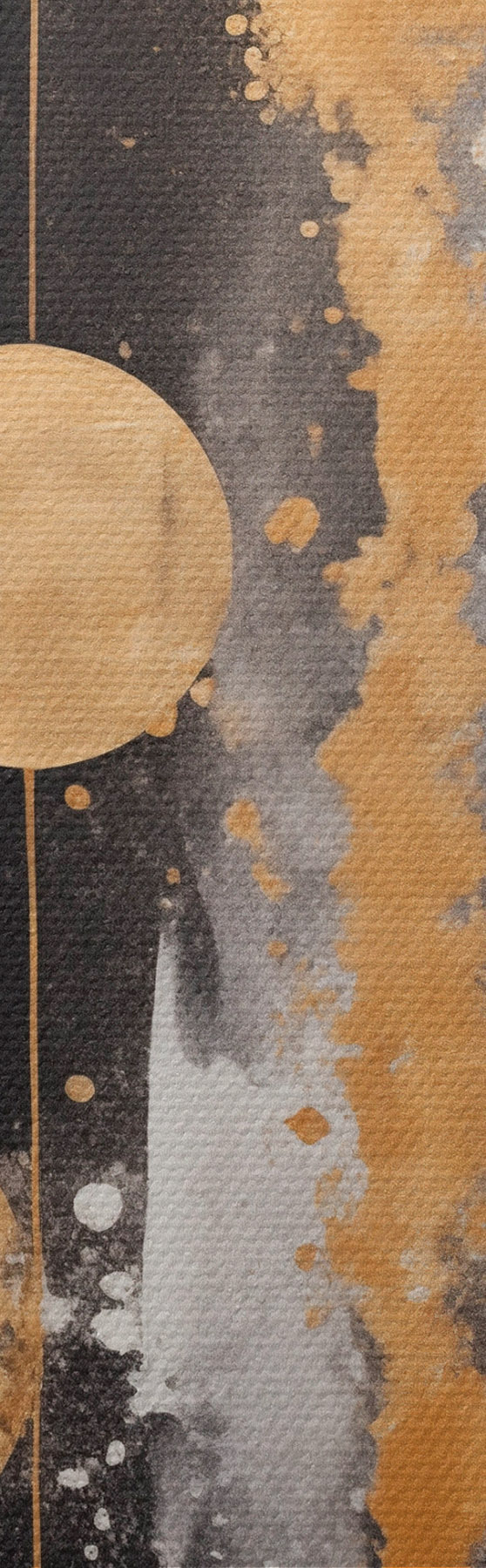 Schilderij Abstracte kunst met gele cirkels op zwarte en witte achtergrond met witte en gele vlekken Art. s43410