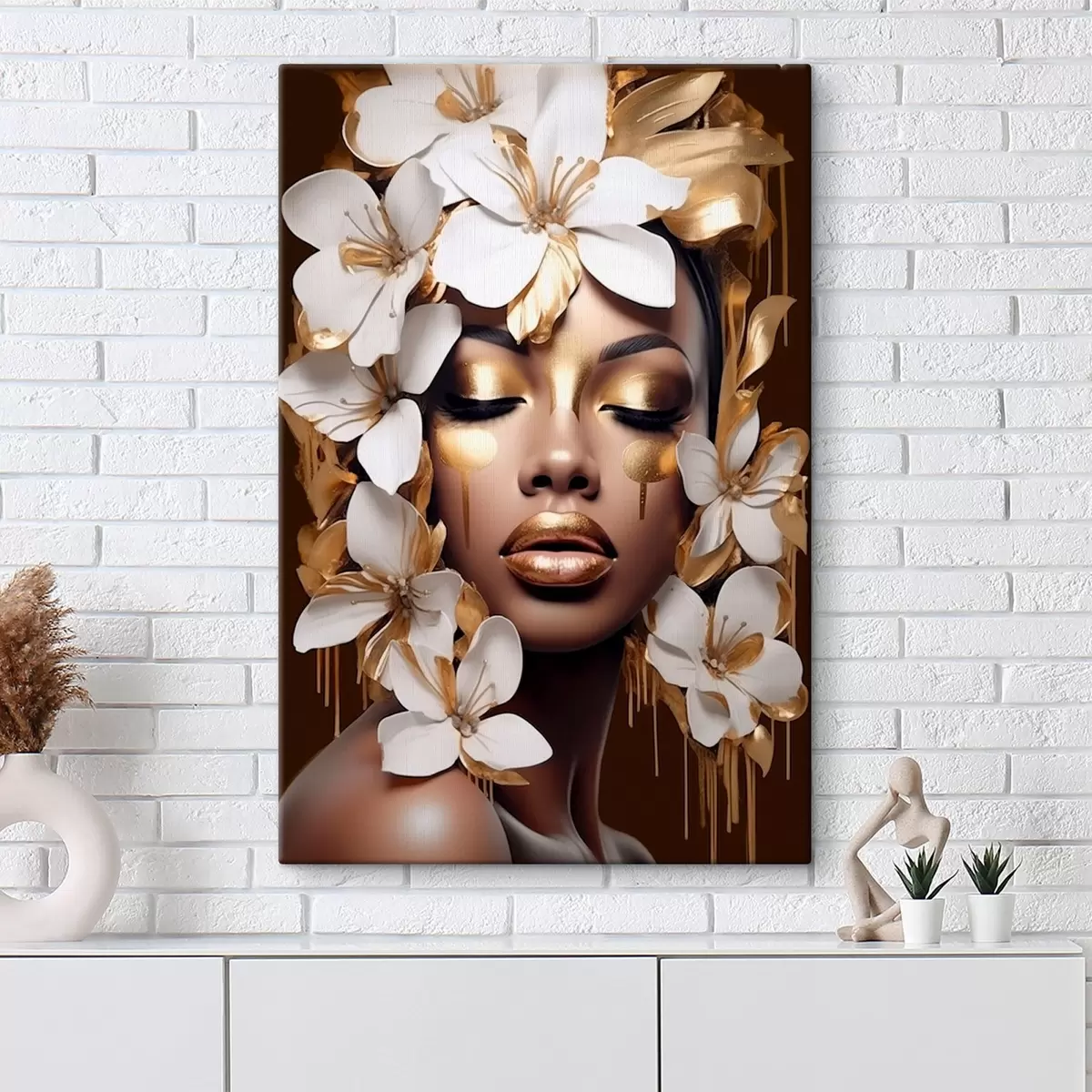 Schilderij Vrouwenportret met florale elementen Art. s43417