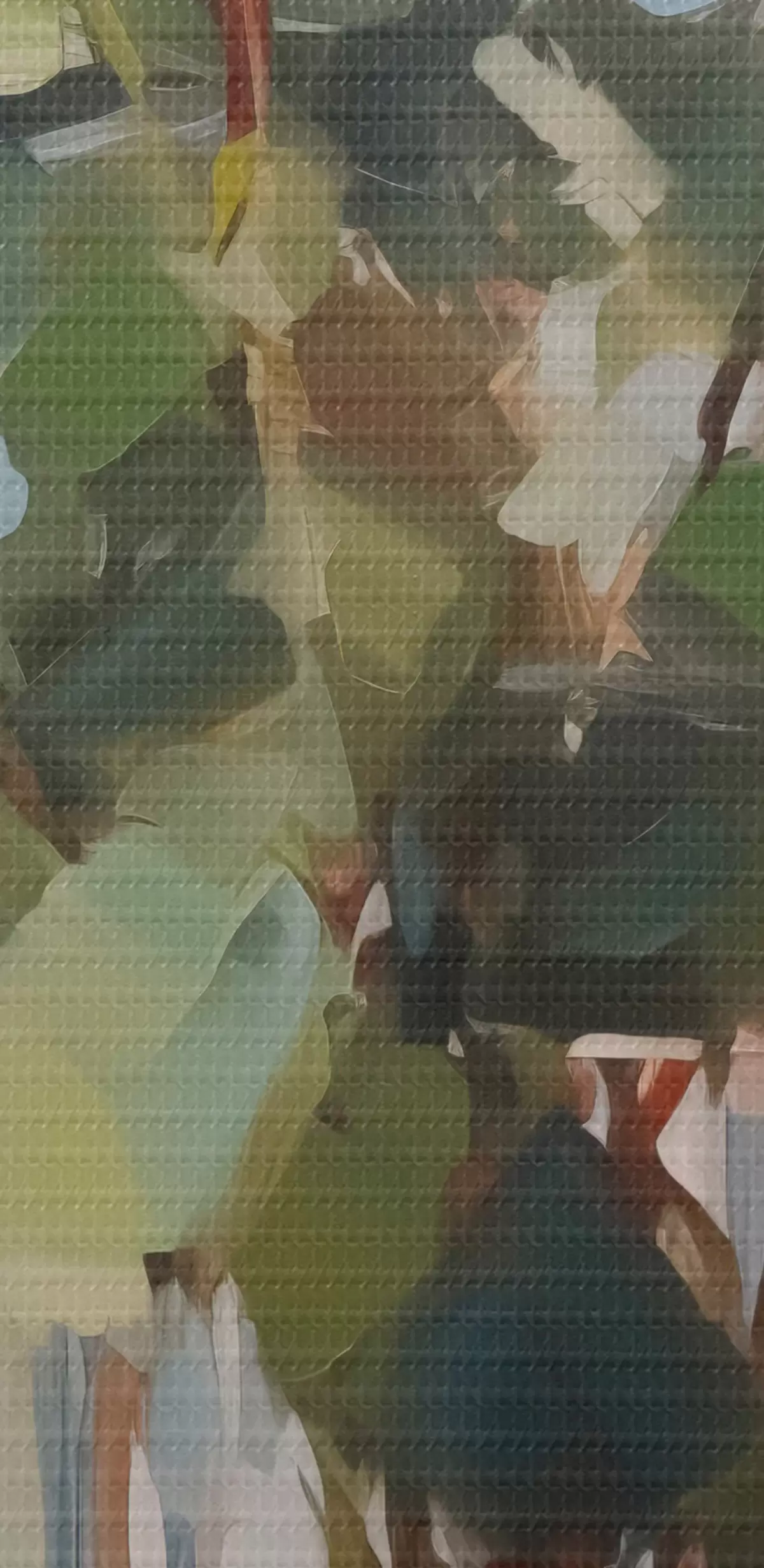 Het schilderij kan direct na ontvangst worden opgehangen. Het schilderij wordt opgespannen op een 2 cm breed houten spieraam.