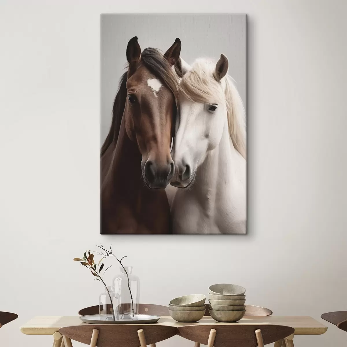 Je kunt het schilderij ophangen aan schroeven. Hiervoor leveren we bevestigingen bij onze foto's, zodat je de foto gemakkelijk kunt ophangen.