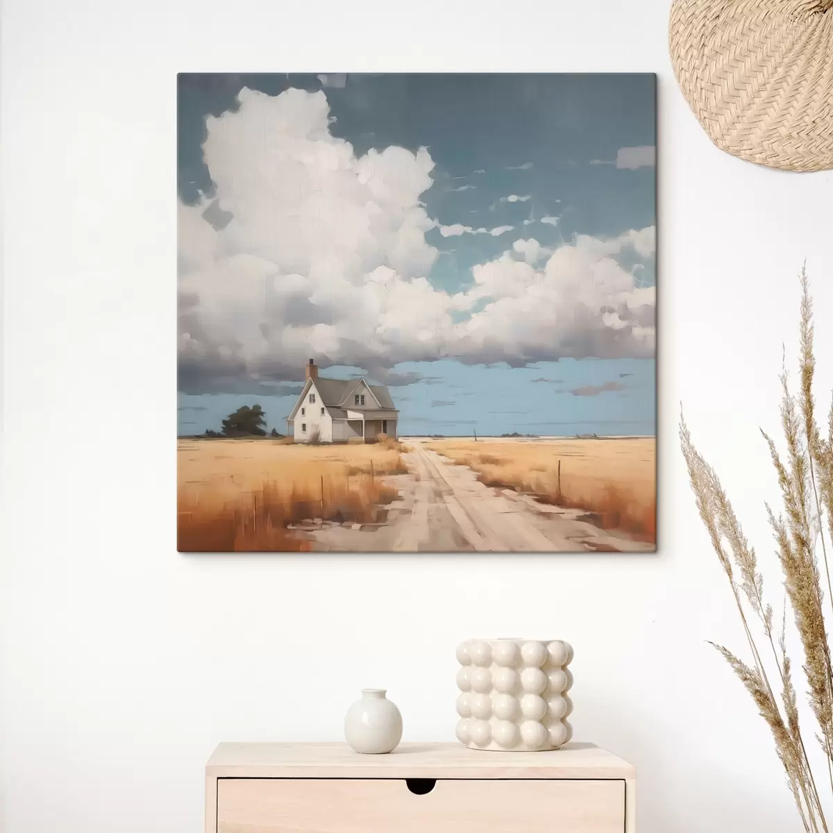 Schilderij Huis in het veld imitatie van schilderkunst Art. s43440