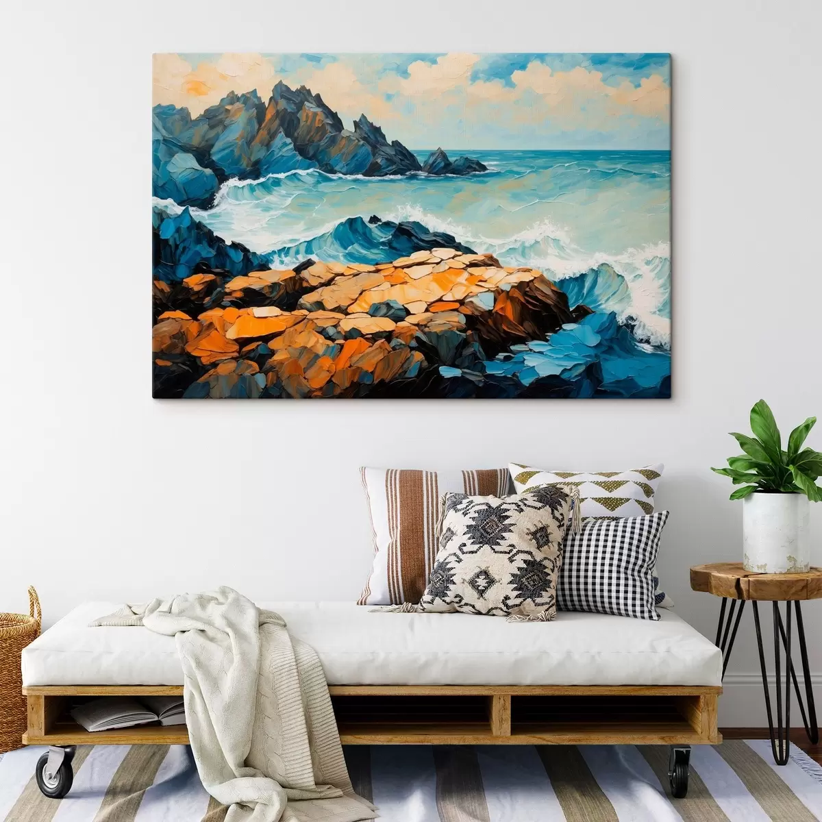 Het schilderij kan direct na ontvangst worden opgehangen. Het schilderij wordt opgespannen op een 2 cm breed houten spieraam.