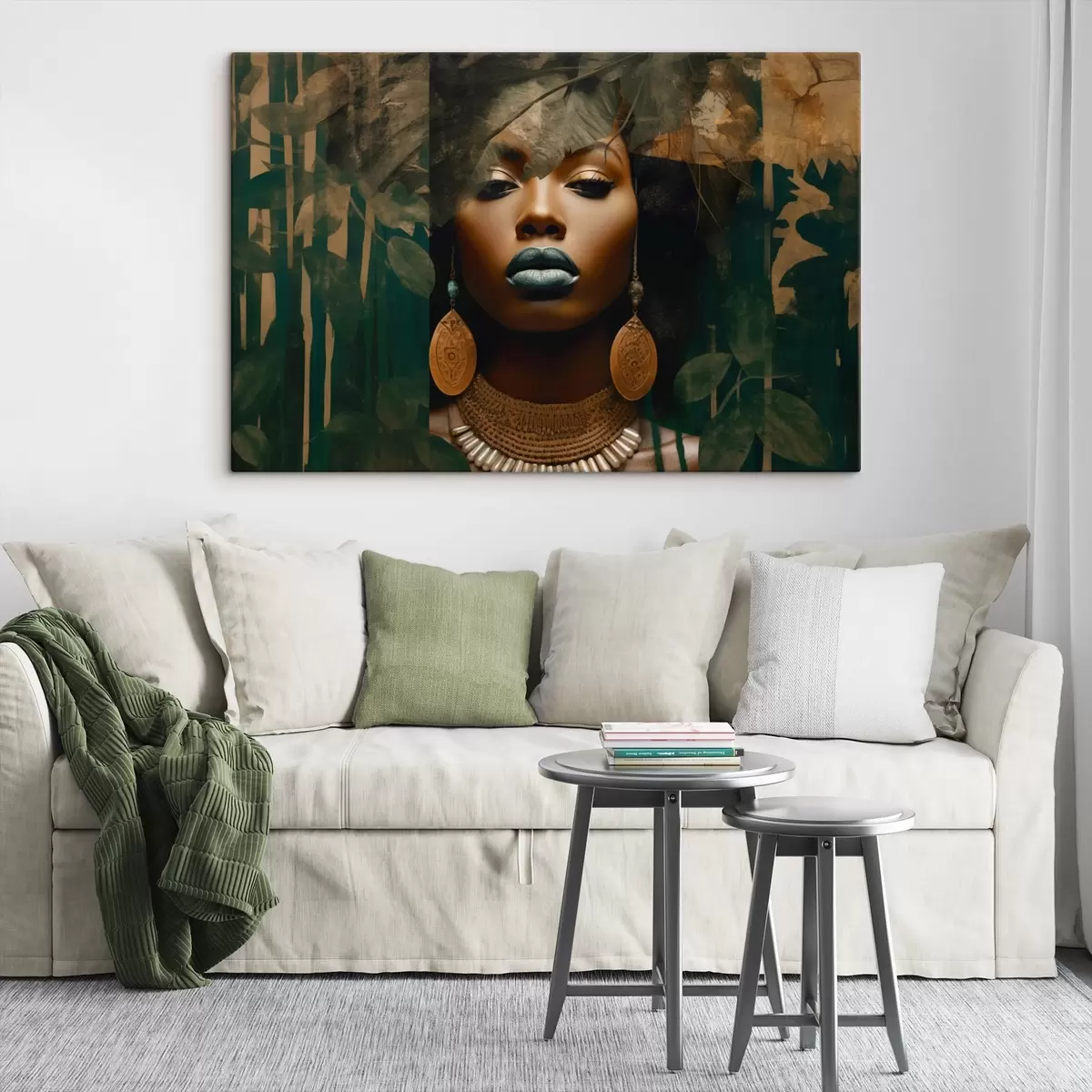 Schilderij Meisjesgezicht op abstracte bosachtergrond Art. s43466