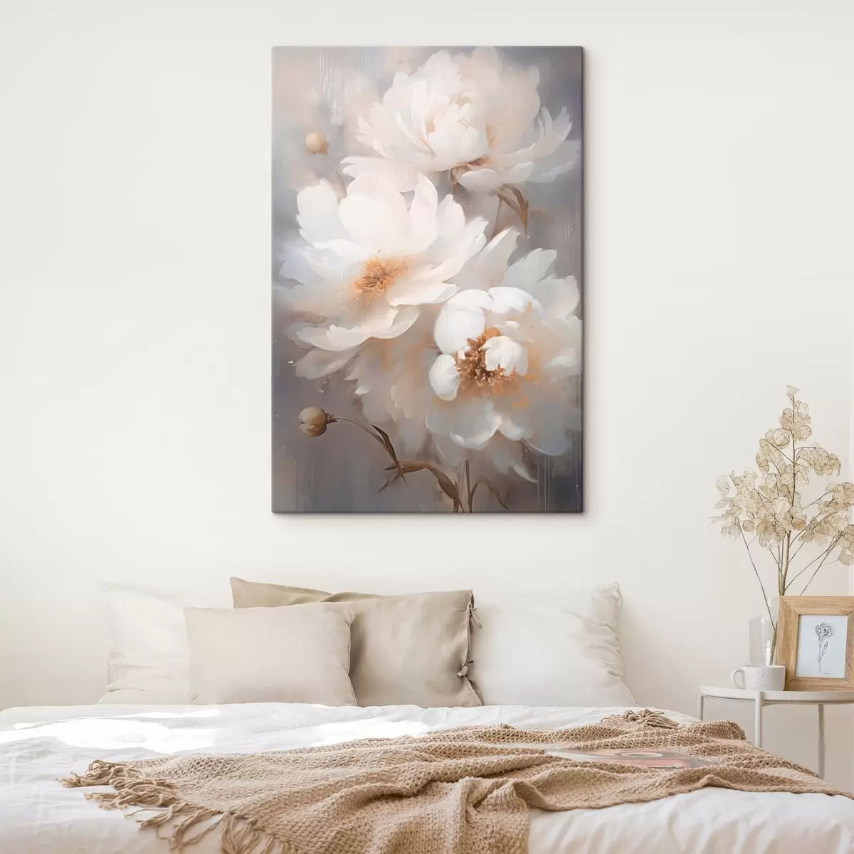 Schilderijen Witte bloemen en stengels op wazige achtergrond s43473