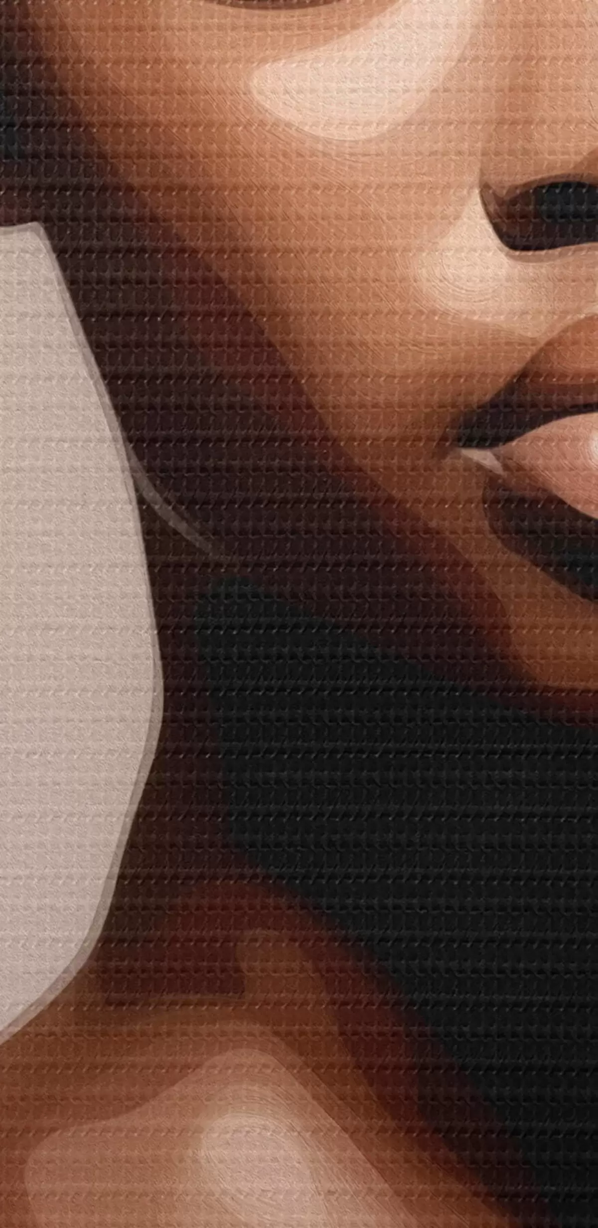 De fijne weving van draden op dit doek lijkt op het oppervlak van professionele schildersdoeken.