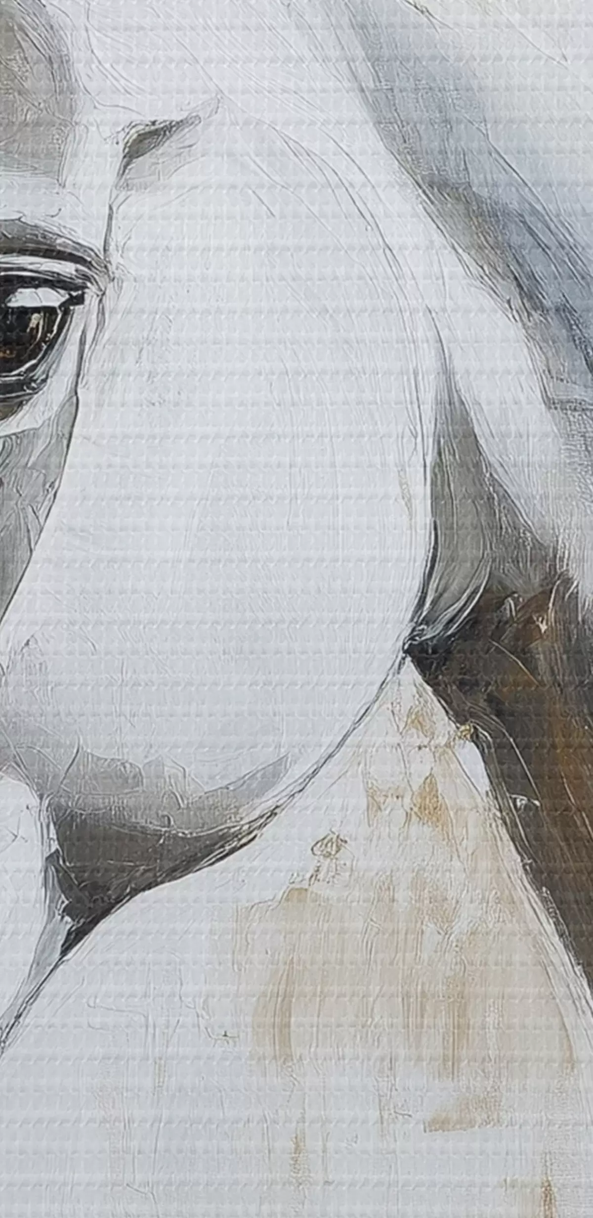 Schilderij Wit paard, olieverf tekening, dieren, levendige penseelstreken Art. s43497