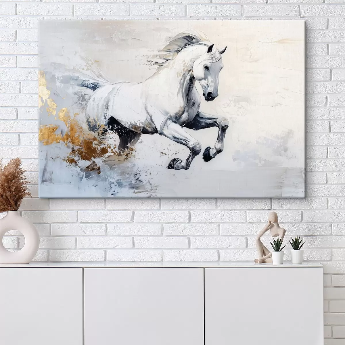 Schilderij Lopend wit paard, olieverf tekening, dieren Art. s43498