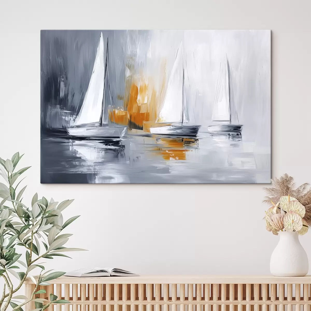 Schilderij Zeilboten, abstractie, acrylstijl tekening, grijs en oranje Art. s43499