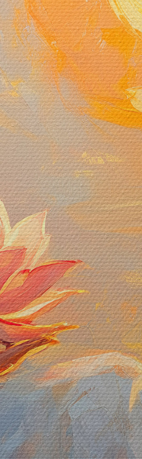 Schilderij Vrouw met lotusbloem op de zonsondergang, witte vogel, tekening in olieverfstijl Art. s43501
